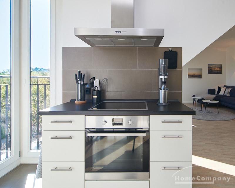 This bright, high-quality furnished 3-room attic apartment is located in a quiet yet central location in Hamburg-Barmbek-Süd. It is on the top floor of a very well-maintained apartment building with an elevator and shared green space.