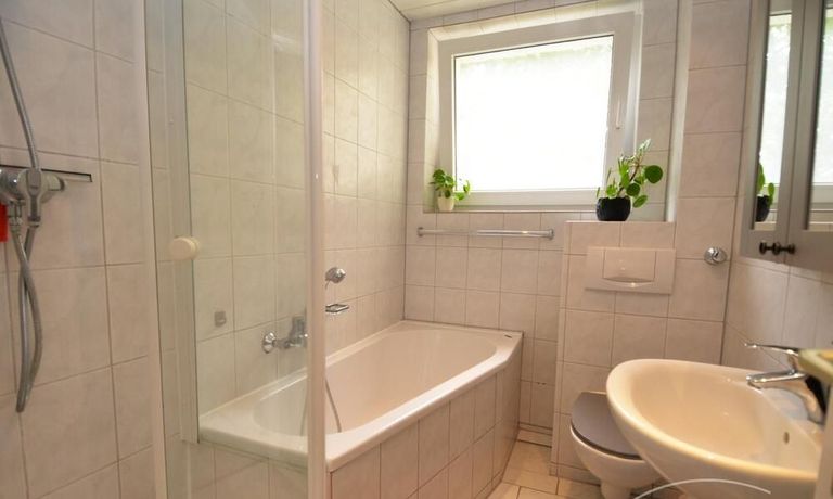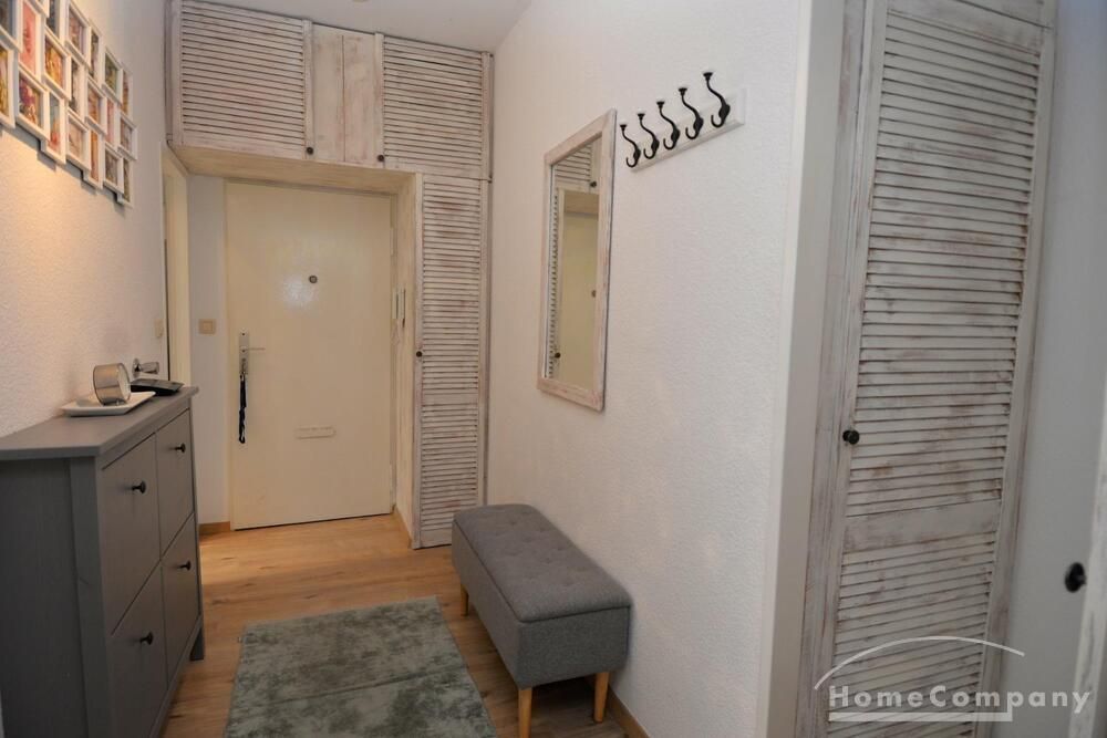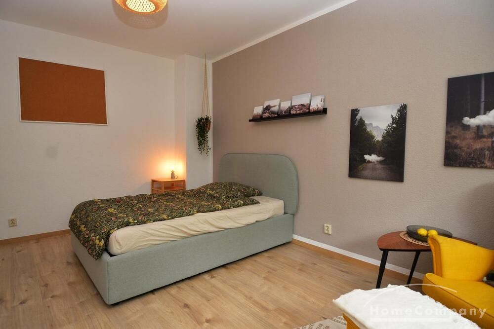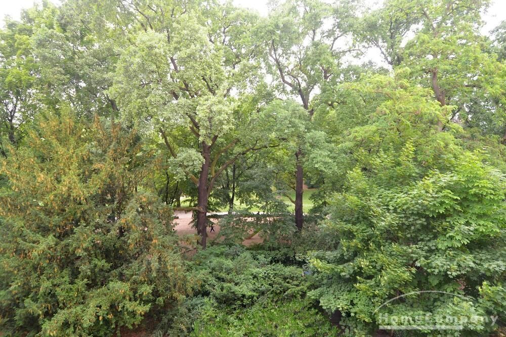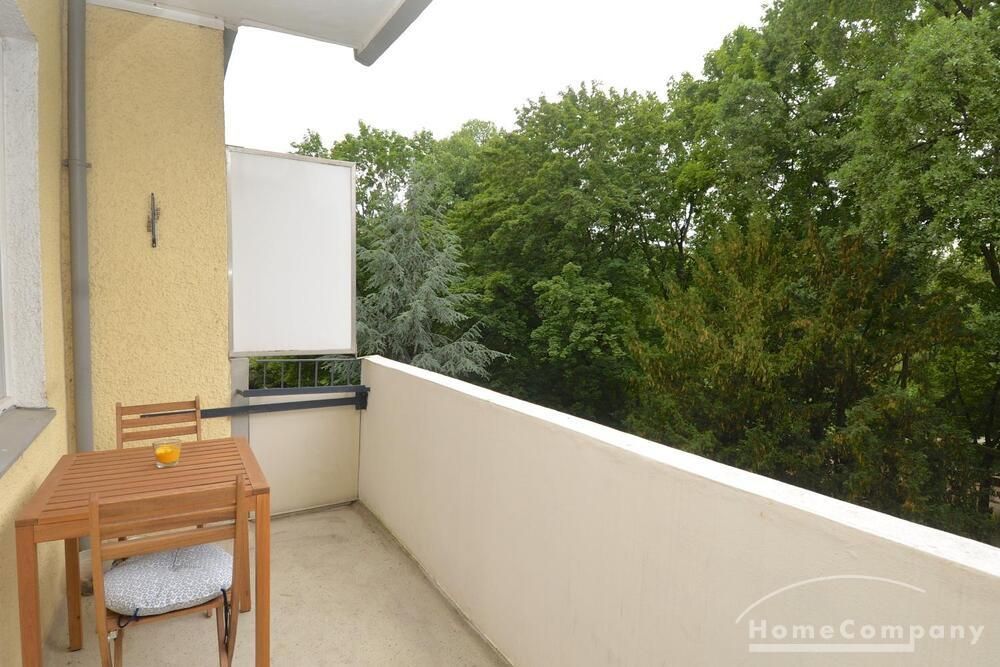 The property features a fully furnished living/bedroom with a double bed, a comfortable sofa, and other furniture, as well as access to a beautiful, large balcony with park views. The modern, fitted kitchen is separate and fully equipped. The new, daylight bathroom has a shower and bathtub. All everyday necessities are provided, as well as a storage room, a washing machine, and internet access.