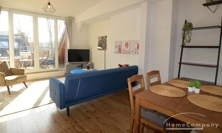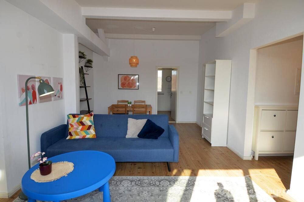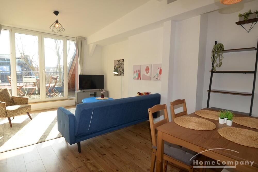 This charming and bright 2-room apartment on the 5th floor of a well-maintained building offers a cozy home above the rooftops of Berlin. Fully furnished, it is perfect for anyone looking for a stylish and comfortable place to stay in Neukölln.