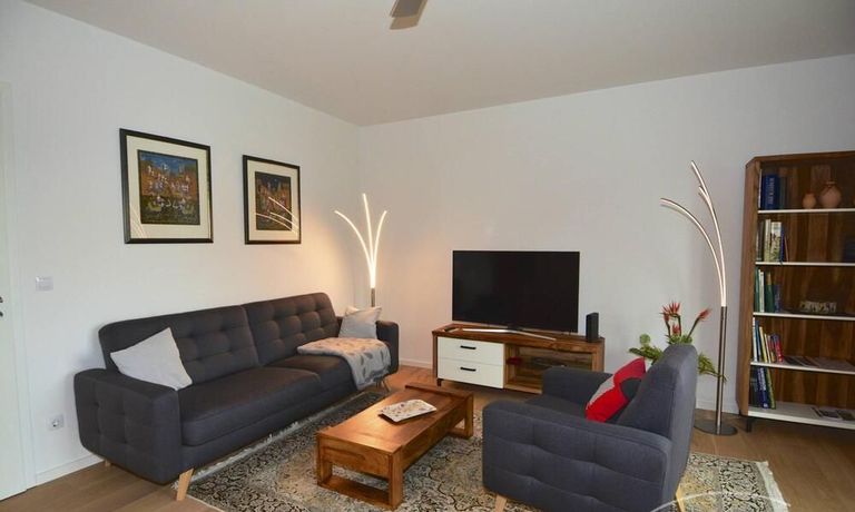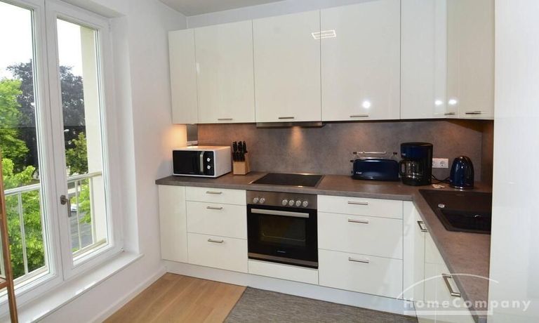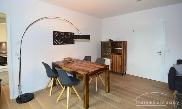 Comfortably furnished 2-room apartment in Skandinavian style with covered balcony. Very inviting ambiente with fitted kitchen including a dishwasher and microwave, cozy bedroom with boxspringbed and a large wardrobe with plenty of storage space. Nicely tiled daylight-bathroom with tub. Modern underfloor heating throughout the apartment. Internet is also available. The washing machine is located in the laundry room. Underground parking space included.