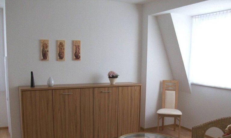 This renovated and fully furnished flat is situated on the first floor of a well-kept property in Teltow, only a 5 minute walk away from the Teltow S-Bahn station which makes it very easily commutable to the city centre of Berlin or Potsdam. Quiet and safe area in the historical centre of Teltow. The flat was refurbished in 2012. Modernly equipped. Fully fitted kitchen with dishwasher and fridge/freezer. Bathroom with tub shower and washing machine. Comfortable bedroom with doublebed and walk-in closet. Living room equipped with sofabed, dining table and chairs, wardrobe, LED TV, Hifi soundsystem. wifi internet is included. Large Balcony with summer chairs.