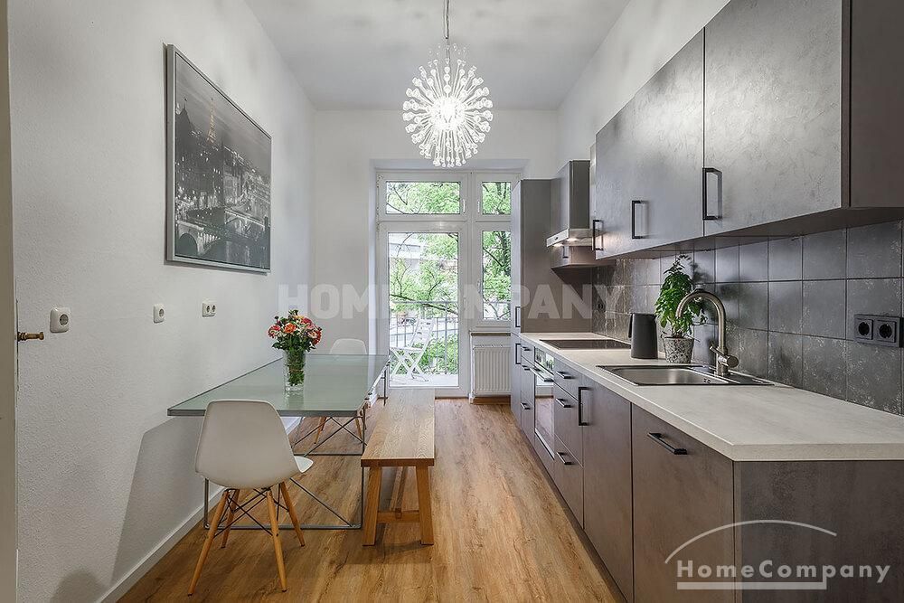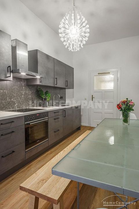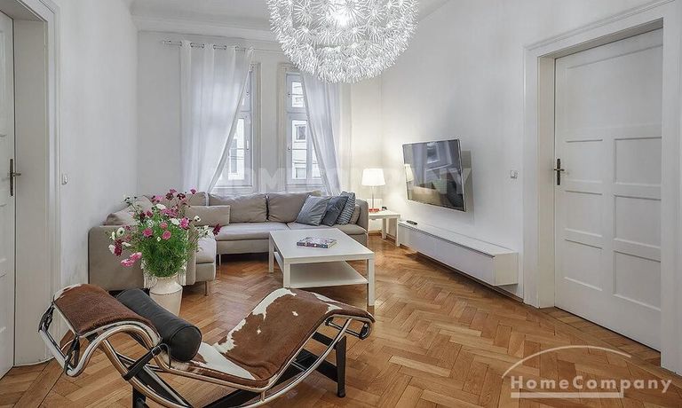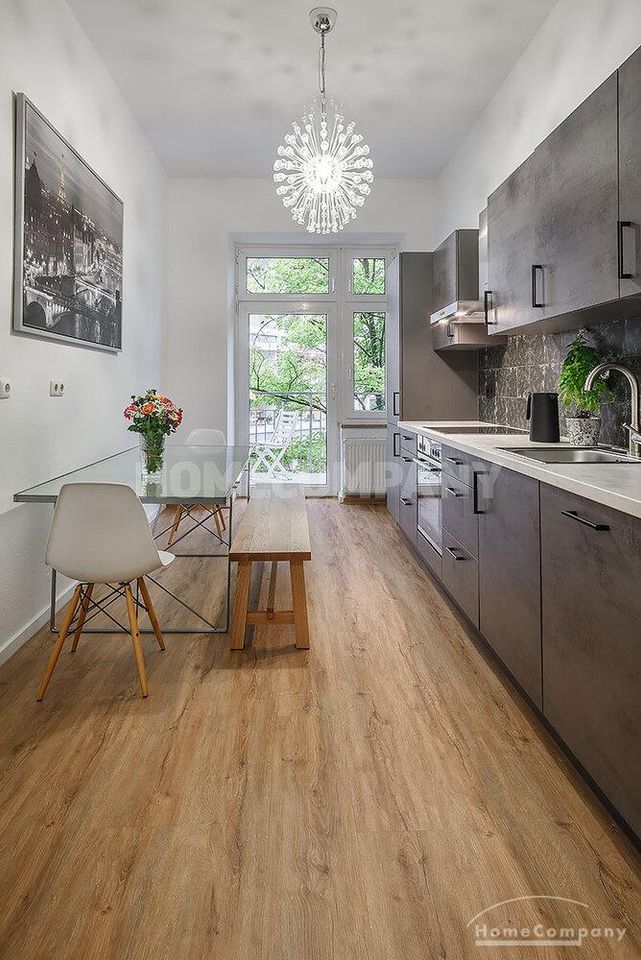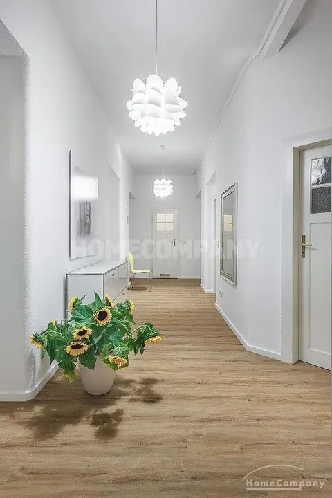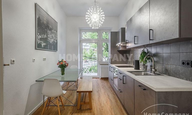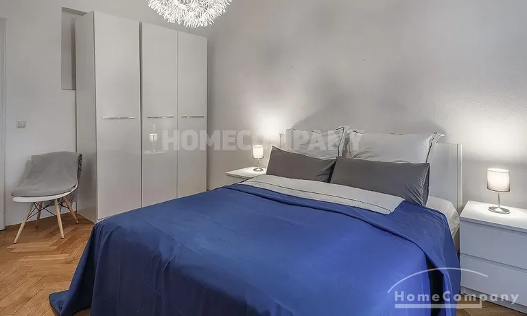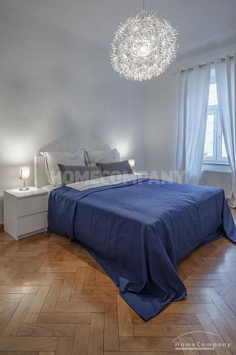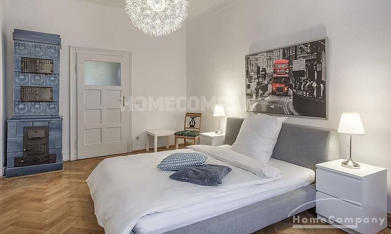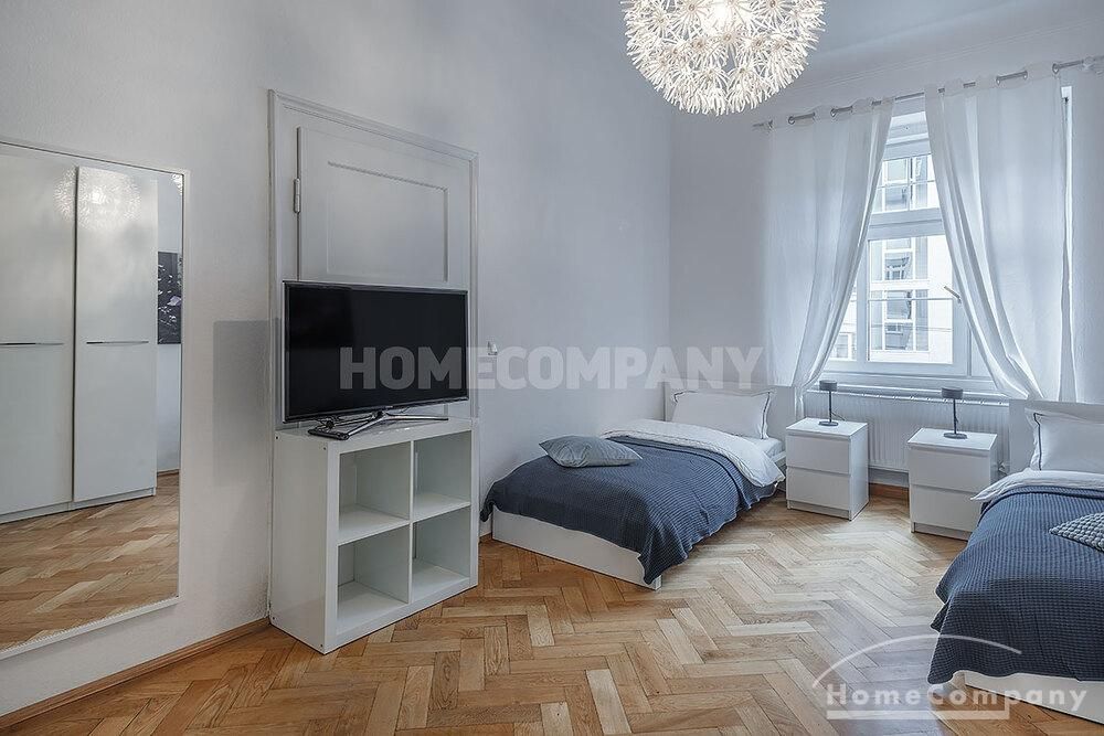 Furnished 4 -room flat with balcony and 2 bathrooms in Munich- Neuhausen. The flat is on the 1st floor. Large living room with 2 sofas, flat screen TV and reading corner. There are three bedrooms available. The master bedroom has a double bed (180×200 cm), wardrobe, flat screen TV and a working space. The other two bedrooms have two single beds (120×200 cm), flat screen TV, wardrobe and a working space. On request it is possible to reduce the number of single beds. Eat-in kitchen with refrigerator, microwave, ceramic hob and oven, dishwasher, dining table for 4 people and access to the balcony. In the flat there are two bathrooms with bathtub and heated towel rail – one with toilet, washing machine and window. Extra WC also available. An additional clothes dryer is located in the utility room, which is accessible from the corridor. Flooring: parquet in the living/bedrooms, linoleum in the kitchen, tiles in the bathrooms. An Internet flat is included in the rent. An underground parking space is available upon request for plus 120.00 EUR per month. GEZ (TV licence) and municipal utilities must be registered by the tenant. Rent does not include electricity and heating. Pets are allowed. Shops, restaurants, bars, cafes etc. as well as public transport nearby.