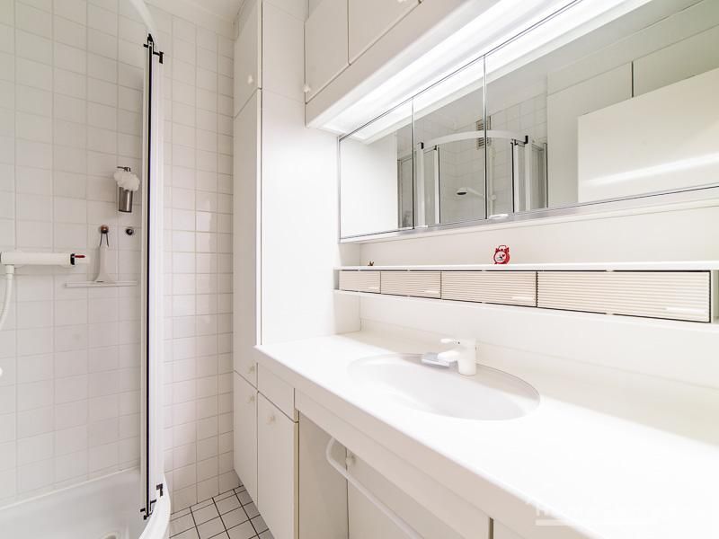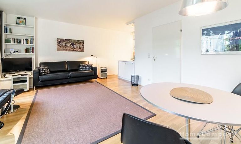 A recliner with a footstool is also available for relaxation. A dining table with 4 chairs is available. The kitchen is open to the living room and is well equipped. The apartment has a balcony. Dryer and washing machine are in the laundry room. An underground parking space (duplex) and internet connection are included in the rental price.