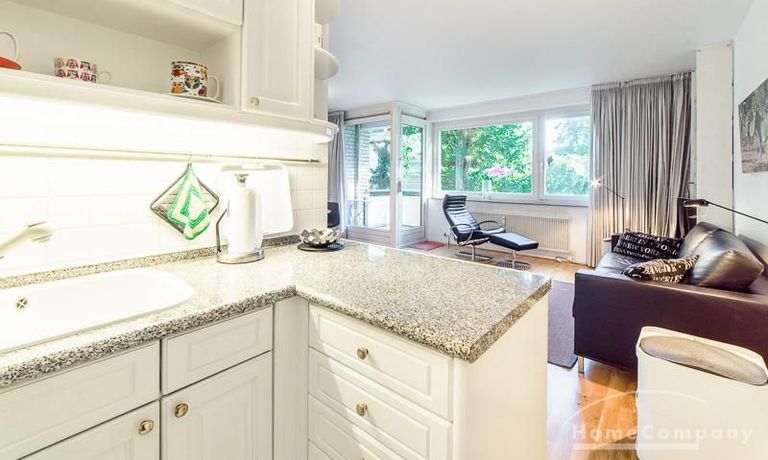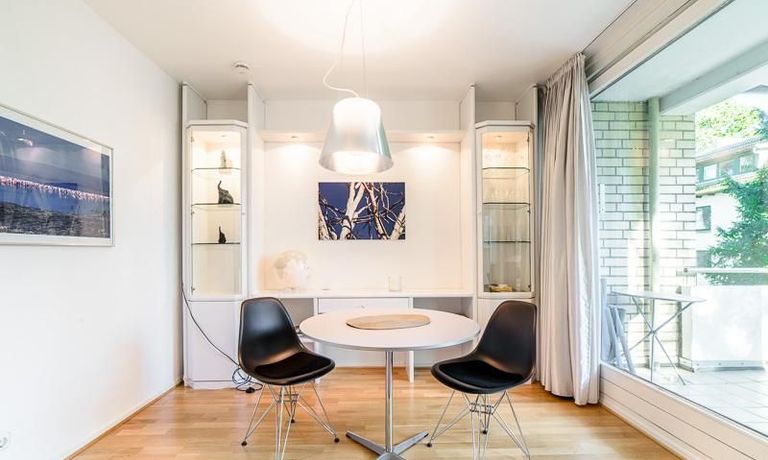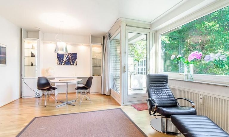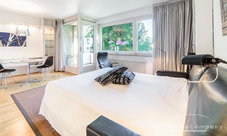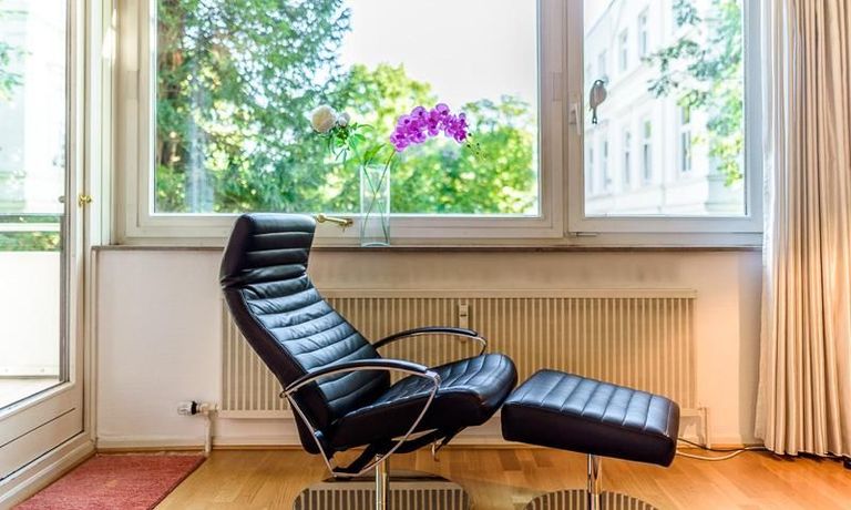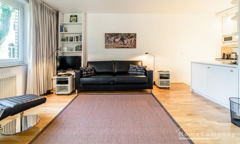 Centrally located apartment, close to the Outer Alster. The very bright apartment is equipped with a high-quality leather sofa bed, which is equipped with an ergonomically high-quality multi-zone mattress and a memory foam topper.