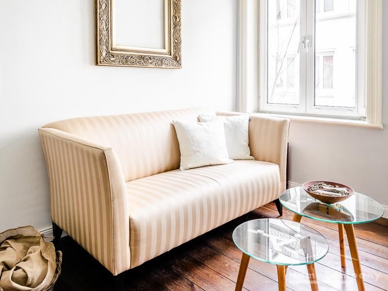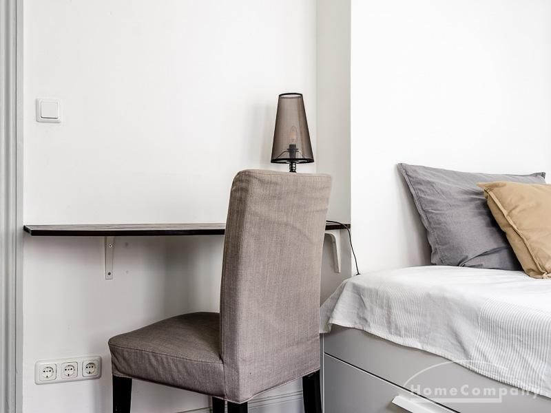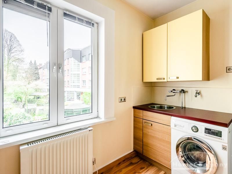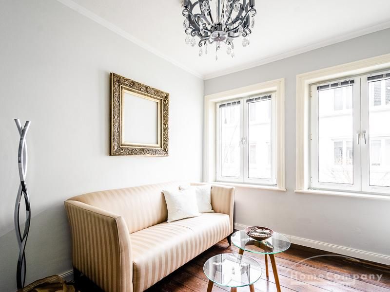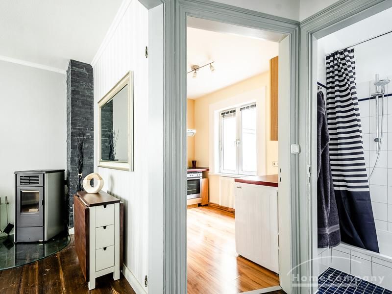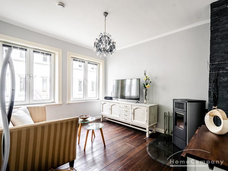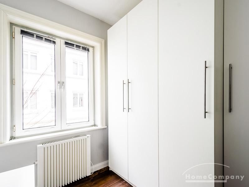 Cozy and very well maintained 2-room flat in a prime residential area on the quiet edge of Hamburg’s popular “Schanzenviertel”. The living room is equipped with a pellet stove, in the bedroom (bed 1,40 x 2 m9)and in the kitchen there is an electric heater. The daylight bathroom with large window is kept in white. The kitchen with dishwasher, washing machine and dryer offers full facilities for business people. The flat has an underground parking space 2 doors next to the flat.