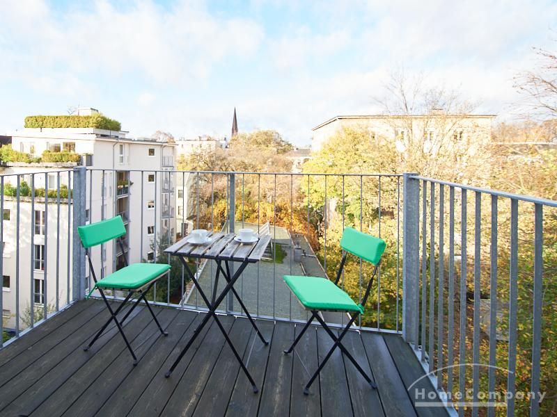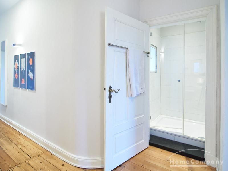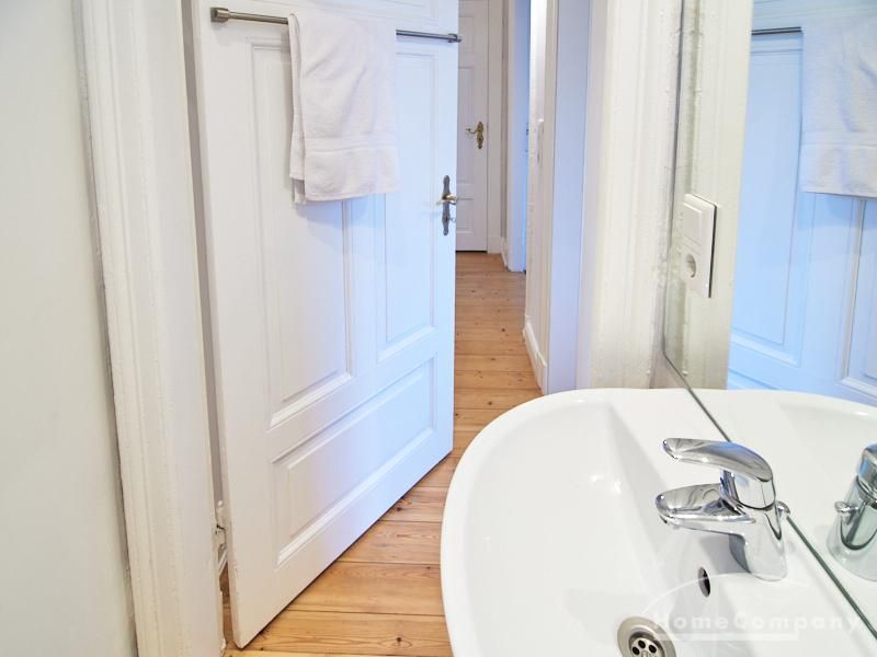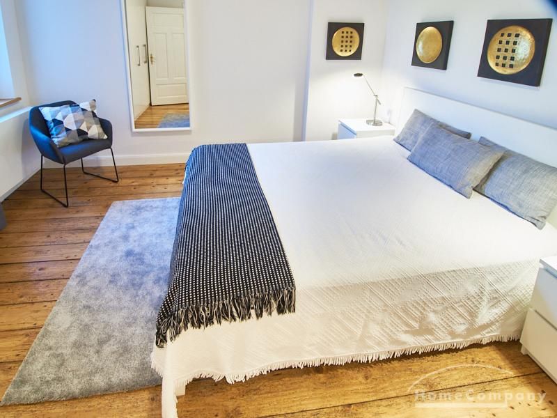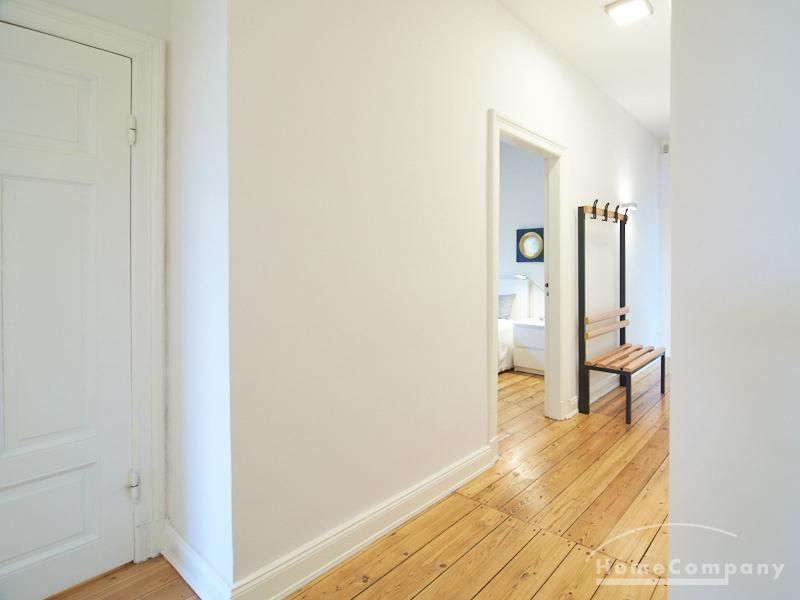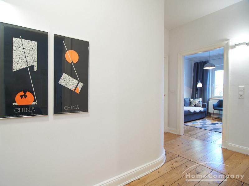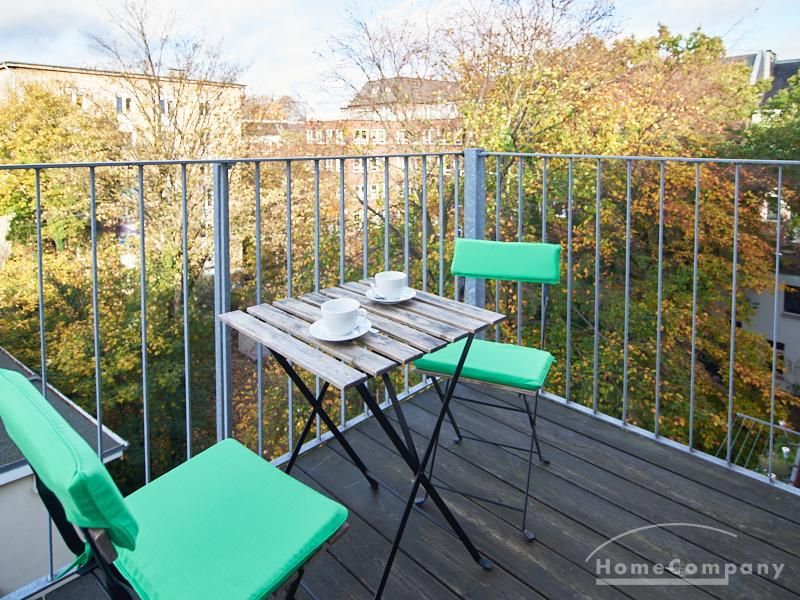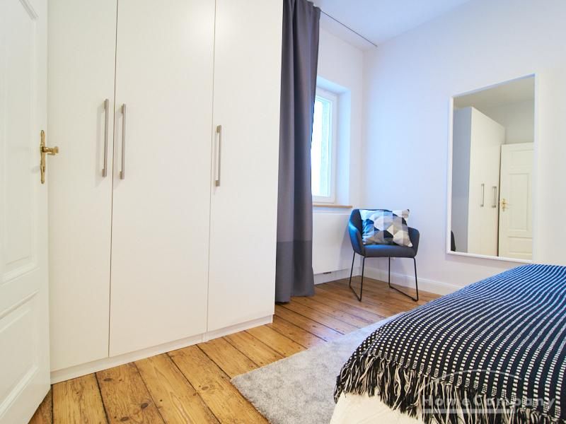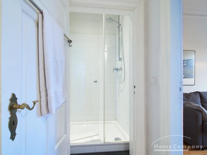Nice flat in an old building close to the Schanzenviertel. The bedroom is equipped with a 1.60 m wide double bed. The wardrobe has adequate storage space. In addition, there is a small desk for the notebook. The living room is furnished with a convirtable sofa, coffee table and TV. In the kitchen is a dining table available. The well-equipped kitchen is fitted with white fronts and a mango-colored panel on the wall. The apartment is decorated in bright shades of gray with white furniture and few parts of yellow decoration.