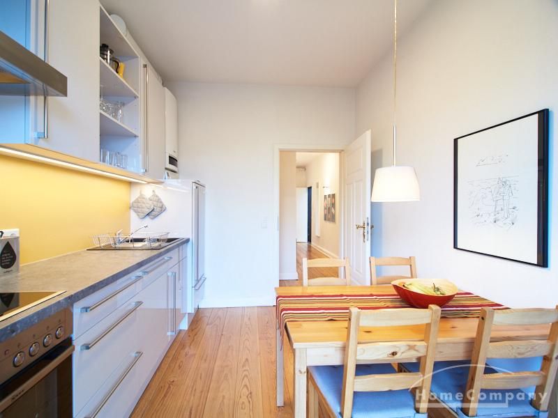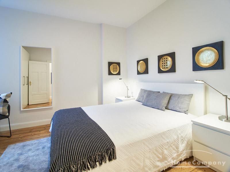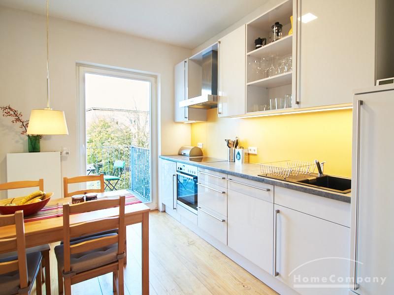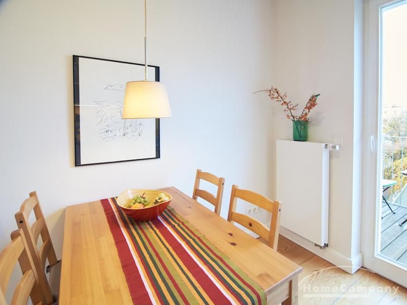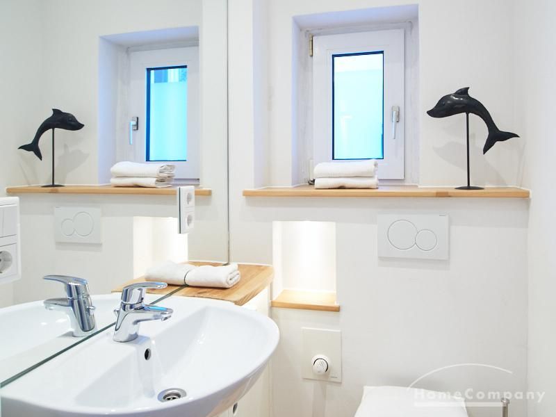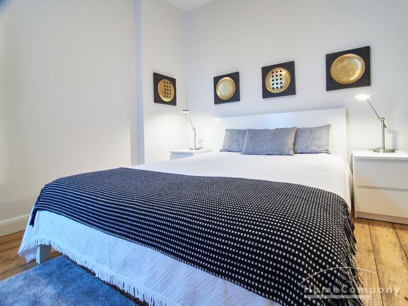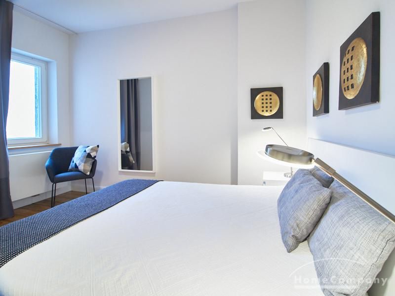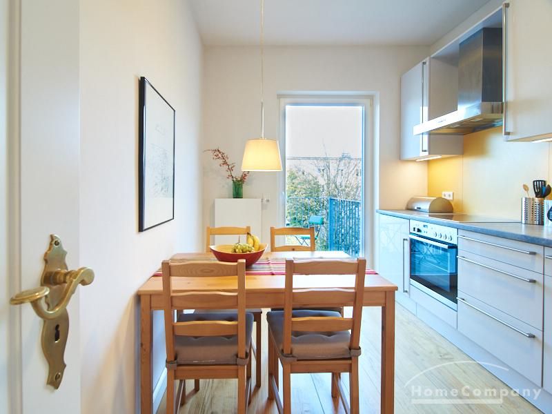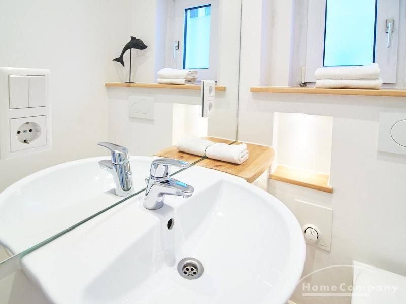 Nice flat in an old building close to the Schanzenviertel. The bedroom is equipped with a 1.60 m wide double bed. The wardrobe has adequate storage space. In addition, there is a small desk for the notebook. The living room is furnished with a convirtable sofa, coffee table and TV. In the kitchen is a dining table available. The well-equipped kitchen is fitted with white fronts and a mango-colored panel on the wall. The apartment is decorated in bright shades of gray with white furniture and few parts of yellow decoration.