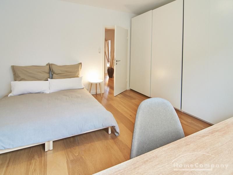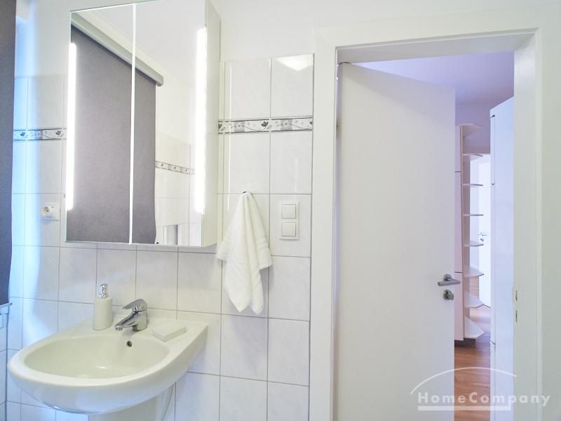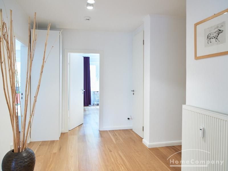 The well-kept flat with 2 bedrooms, two bathrooms, living-dining room, kitchen, balcony and storage room is located in popular Hamburg Eimsbüttel. There is a 1.60 m bed i both bedrooms; in one of the bedrooms there is a 4 m wide wardrobe, in the other a bookcase with a front door. The spacious living area with two large windows offers a place for a cozy get-together and is also furnished with a dining table. The fitted kitchen with a large fridge and freezer combination and dishwasher is fully equipped. One of the bathrooms is a full bath, the second is a shower room with a semi-circular shower cubicle, heated towel rail, washing machine, tumble dryer and a large window overlooking the inner courtyard. The south-facing balcony is furnished with a table and two chairs, and there is a garden set with a sofa, two armchairs, a table and a children’s play area on the green shared courtyard. In the house there is a drying room and a bicycle storage room.
