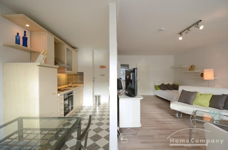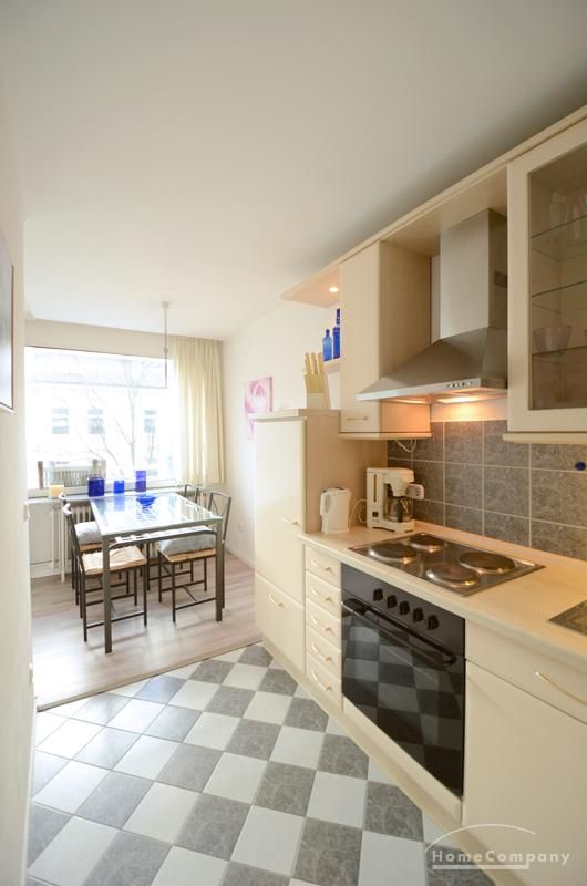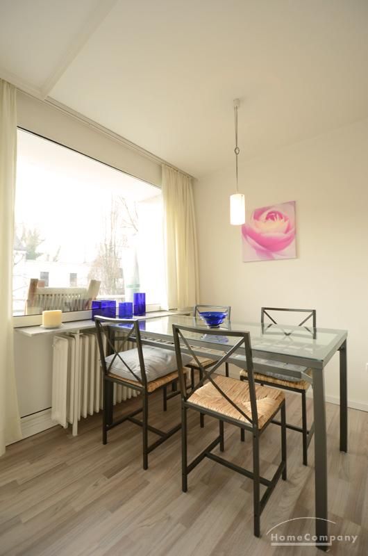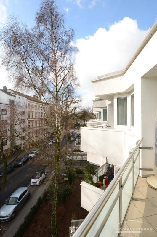 The spacious 1-room apartment is located on the top floor of an apartment building in an address location, the Alster is just across the street. The apartment is attractively and modernly furnished. The large living room is equipped with a comfortable sofa area, TV, a Bluetooth box and a 1.20m wide bed, which can be used as an additional sofa during the day. The living room leads directly to the south-west facing balcony. The well-equipped fitted kitchen is open to the living area. Two washing machines (coin operated), a dryer and two drying rooms are located on the basement level in the laundry room as well as a bicycle cellar. A small, quiet garden for shared use in the courtyard. The apartment is located in a very popular residential area directly on the Alster and centrally located to the city center. Numerous restaurants and shops on Hofweg, Papenhuder Strasse and Mühlenkamp. A large shopping arcade (Hamburger Meile) can be reached on foot in about 10 minutes. There is a bakery in the complex and a small supermarket is located diagonally opposite. The “Außenalster” with the trendy bar “Alsterperle” and the Literature House as well as a bike rental station are in the immediate vicinity.