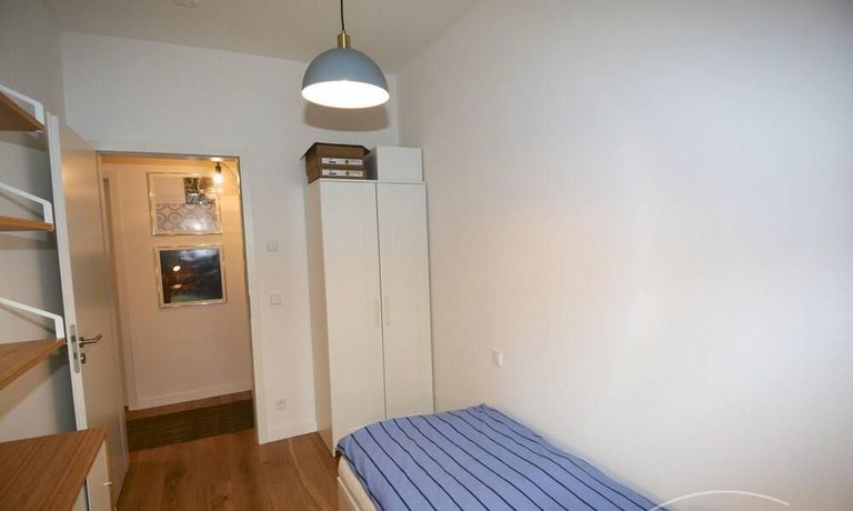 Terrace on the whole length available. Modern tiled bathroom with walk-in shower. Internet and washing machine available.