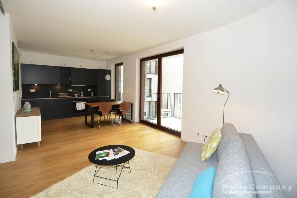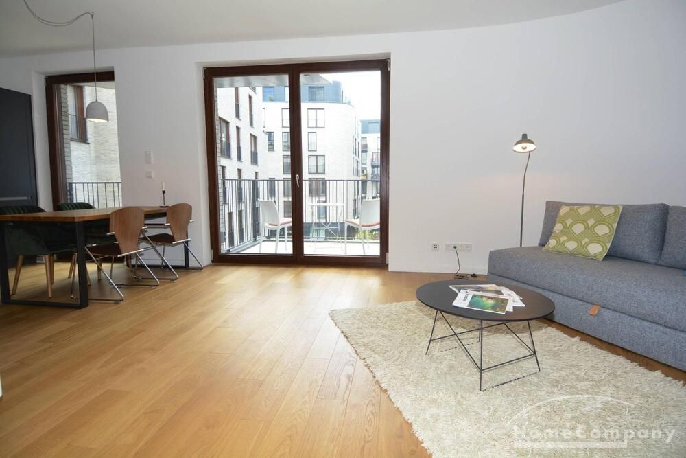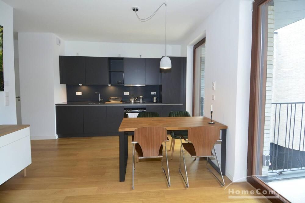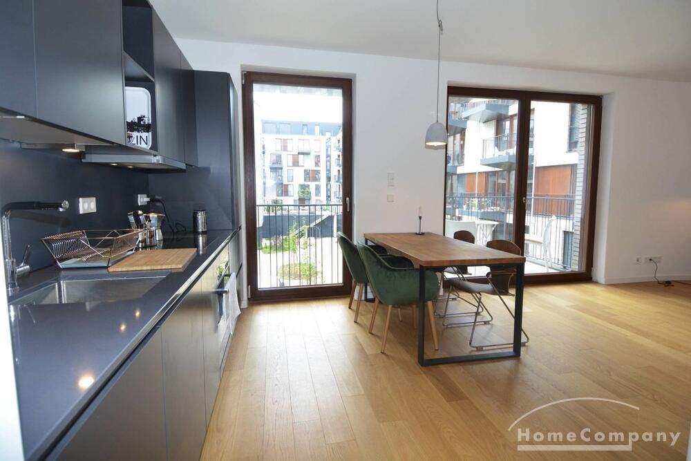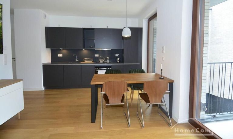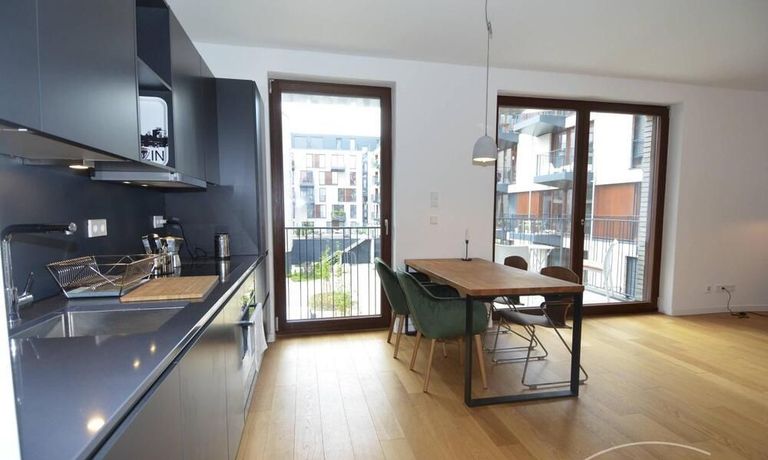 Newly built apartment in Berlin Prenzlauer Berg very modern, sunny, and quiet townhouse on the 2nd floor to the leafy, large courtyard in 2018 completed condominium (Gotland) in south-west. Orientation. Furnished with stylish, high quality furniture and fitted kitchen. Parquet floor in a complete apartment. Floor-to-ceiling windows that give a lot of light, large balcony, floor heating.