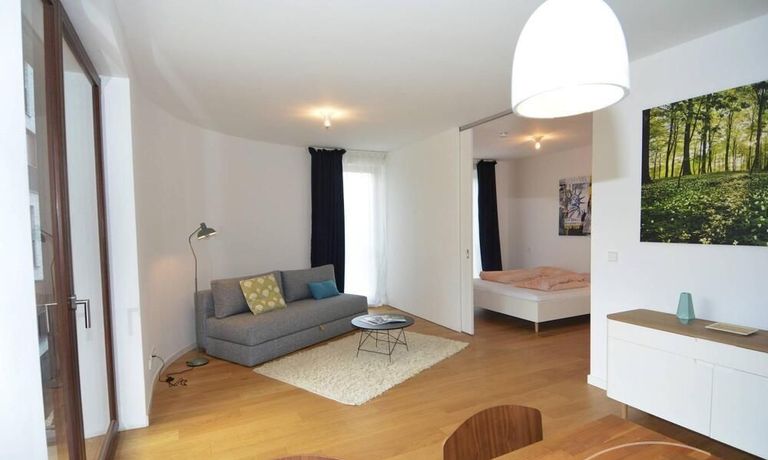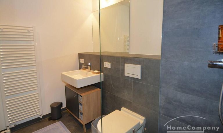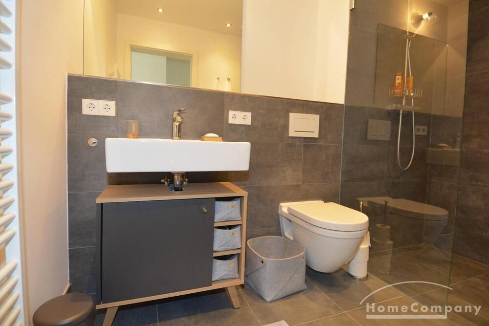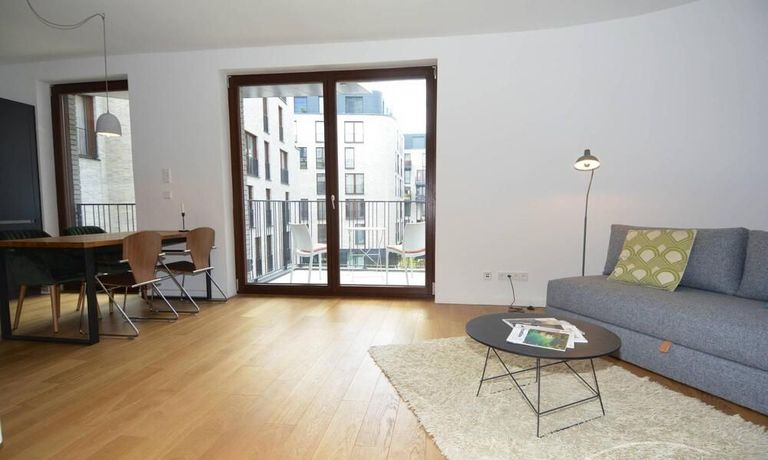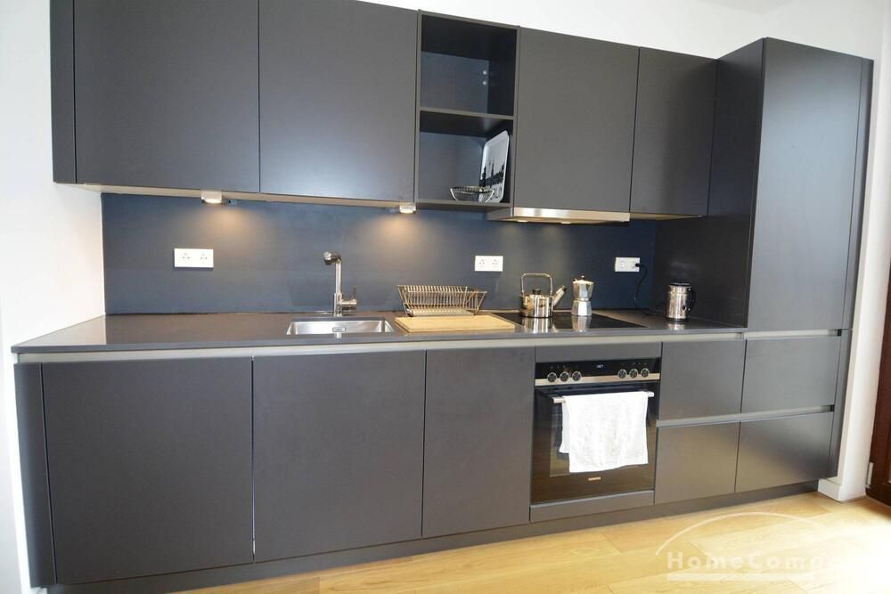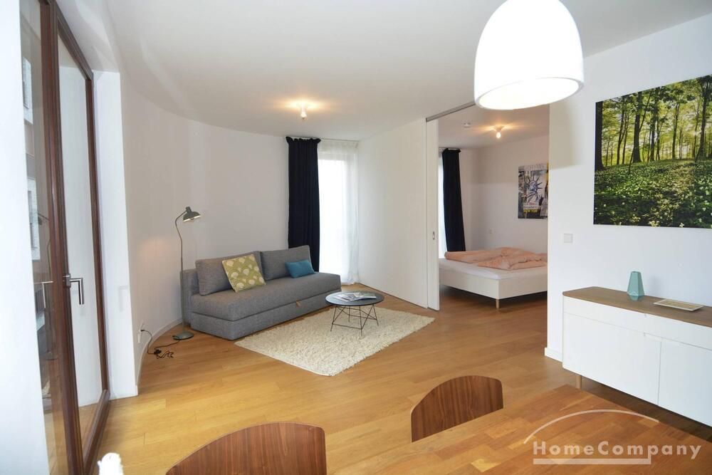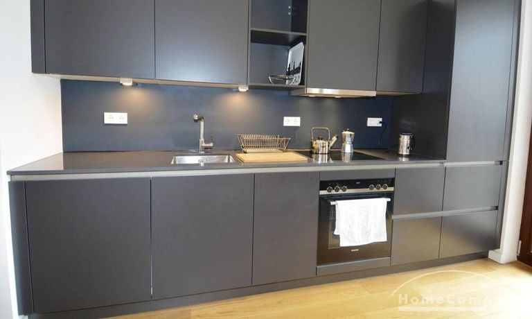 Newly built apartment in Berlin Prenzlauer Berg very modern, sunny, and quiet townhouse on the 2nd floor to the leafy, large courtyard in 2018 completed condominium (Gotland) in south-west. Orientation. Furnished with stylish, high quality furniture and fitted kitchen. Parquet floor in a complete apartment. Floor-to-ceiling windows that give a lot of light, large balcony, floor heating.
