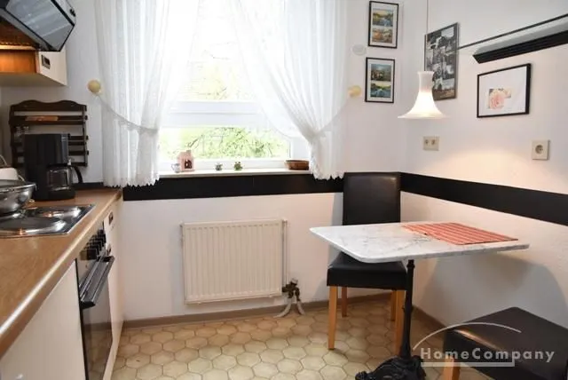 Kitchen approx. 7 sqm, completely equipped with bistro table and 2 chairs.
