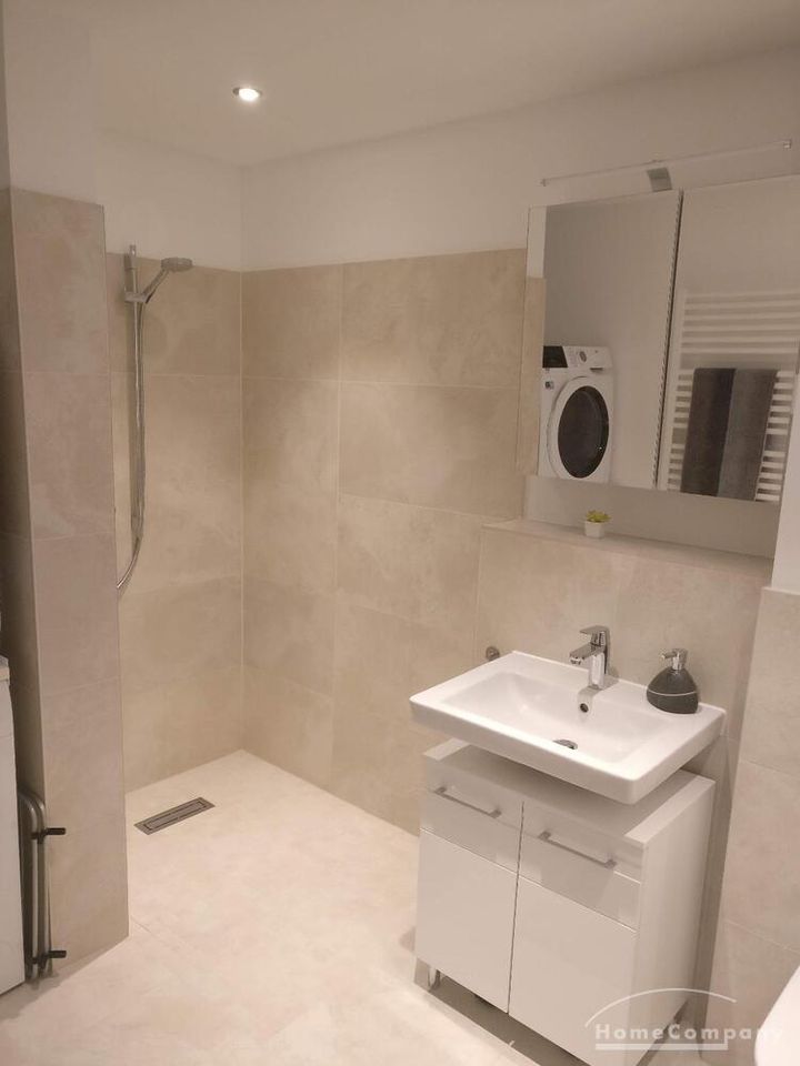 The apartment consists of an approximately 30 m² living/dining area with a built-in kitchen, as well as a spacious bedroom and a bathroom with a floor-level shower, bathtub, washing machine and dryer. Access to an approximately 9 sqm terrace with a subsequently installed wooden floor is possible via the living/dining area as well as the bedroom.
