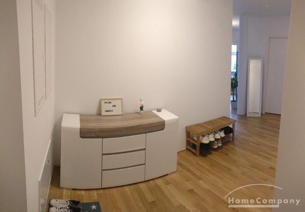 The apartment is located in the west wing of the Riedberg district in the northwest of Frankfurt, which was newly developed in 2016. The Riedberg district is characterized by its abundance of parks and green spaces, which are ideal for taking a walk. Due to the good connections, the city center can be reached within a short time by subway or car. In addition, the A5 and A661 motorways can be reached in just a few minutes.
