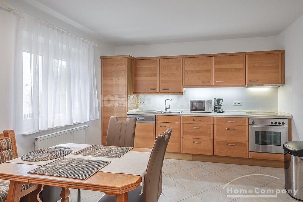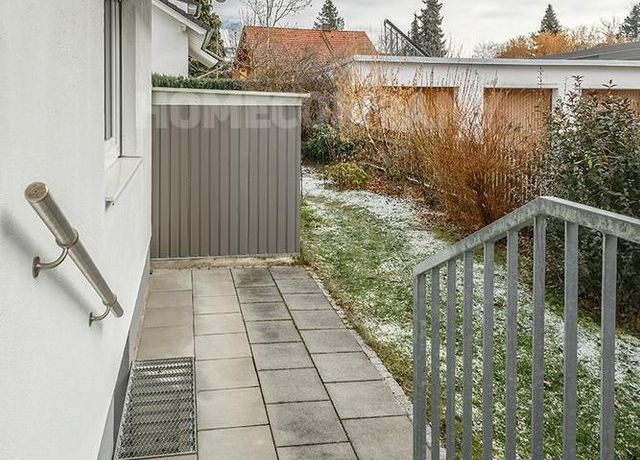 Furnished sunny 2-room apartment with terrace in Ottobrunn. Groundfloor. Large living room with sofa, bedroom with double bed and wardrobe. Spacious eat-in kitchen with comfortable angle-type bench. Bathroom with window and tub. There is laid light-coloured laminate flooring and tiles in the flat. Launderette with washing machine in the house