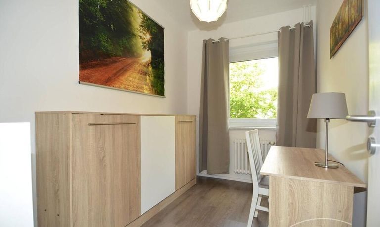 Beautiful, renovated, modern 3-room apartment in the popular Berlin-Schöneberg. Spacious and cozy bedroom with double bed, wardrobe and TV. Another room with work desk available, and another bed. Fully equipped with washing machine, fitted kitchen and internet.