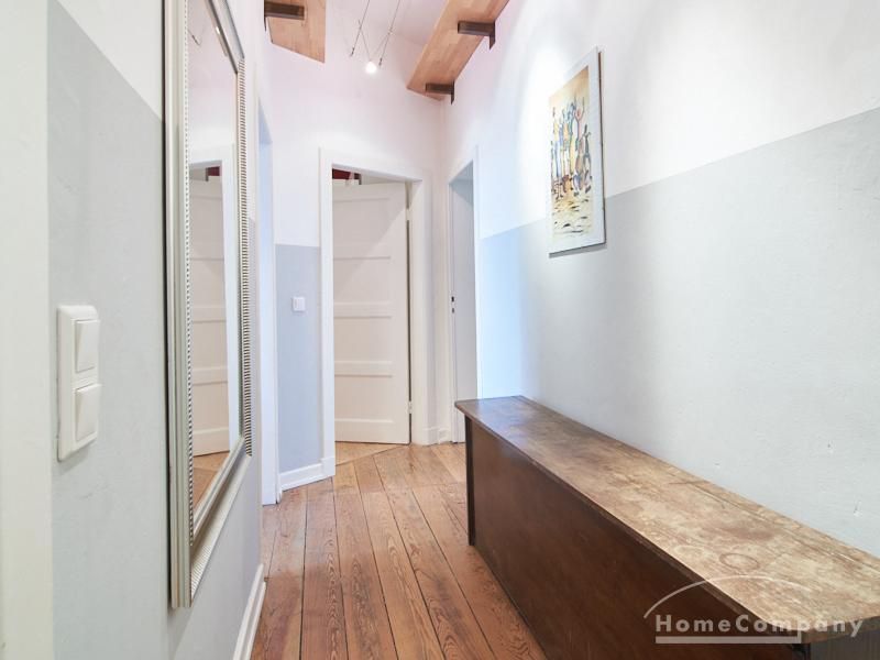 Beautifully designed old building apartment with wooden floorboards and a fireplace in Ottensen. Partially unplastered brick walls set exciting accents for modern furniture. Many pieces of furniture are made to measure. A stove offers special living comfort and the opportunity to relax in the glow of the fireplace after work. There is a large sofa area in the living room as well as a small workspace. The dining table for two is in the well-equipped kitchen. From here there is a small storage room in which the washing machine is located. The bedroom, which is quietly located to the rear, is equipped with a 1.40 wide bed and wardrobe.