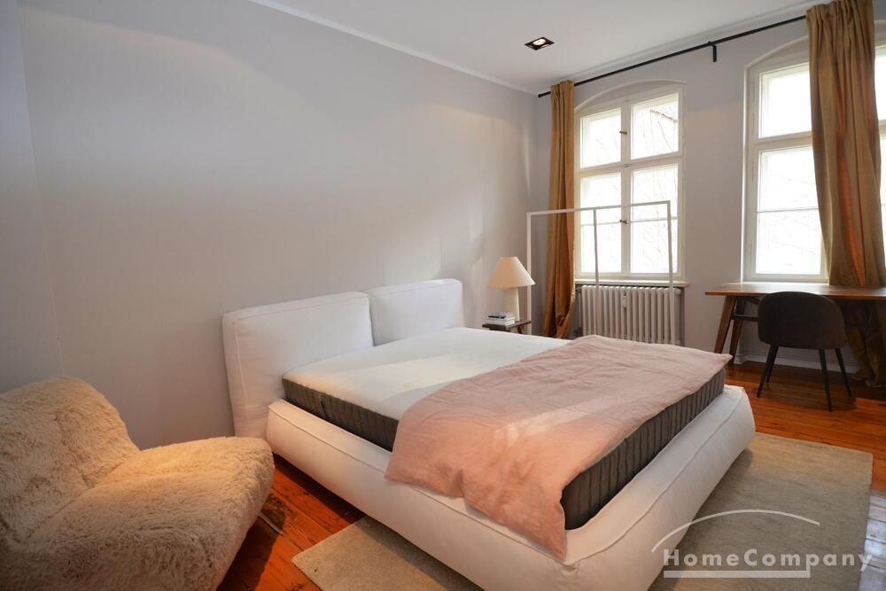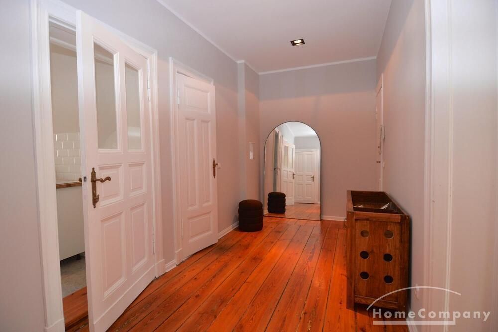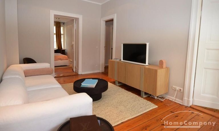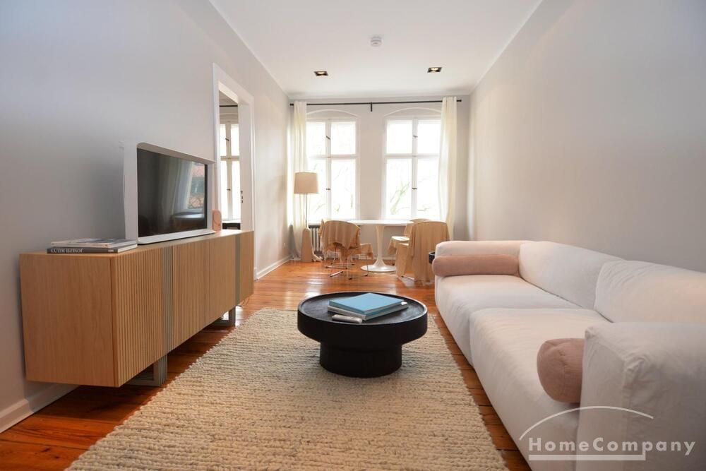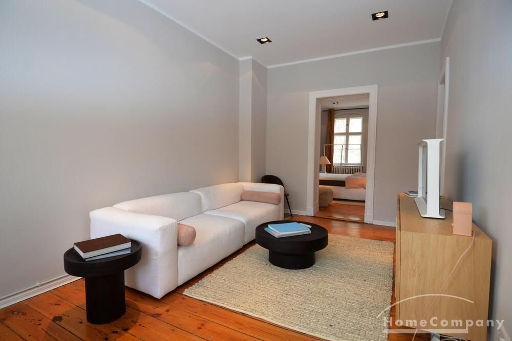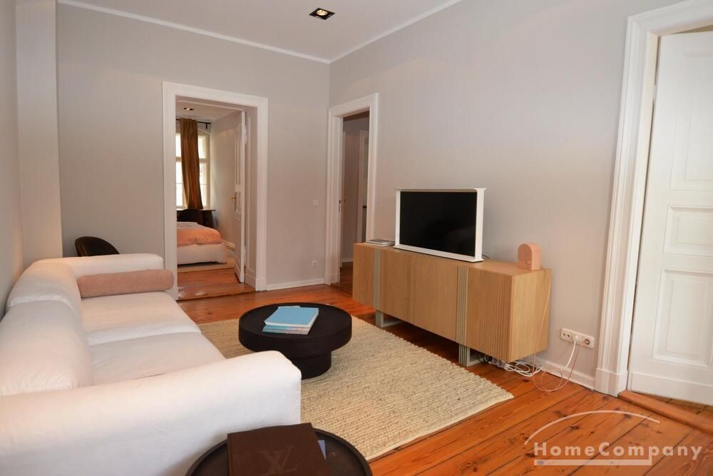 This stylish, fully furnished 3-room apartment with 100 m² is located in a prime position directly at Savignyplatz in Charlottenburg. The apartment impresses with its bright, high-quality interior and wooden flooring throughout. It offers two bedrooms with comfortable box-spring double beds, both with direct access to the spacious living room featuring a sofa and TV. The modern bathroom includes a large walk-in shower. The high-end kitchen is fully equipped with all necessary appliances. Internet is included. A gym is located directly opposite the building (membership approx. 40€ per month). A parking space is available upon request for 160€ per month