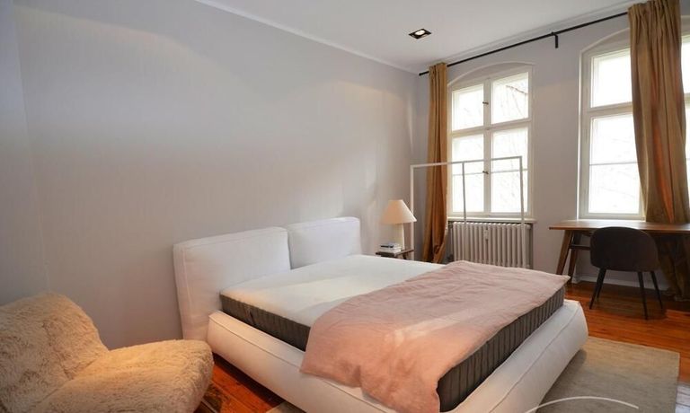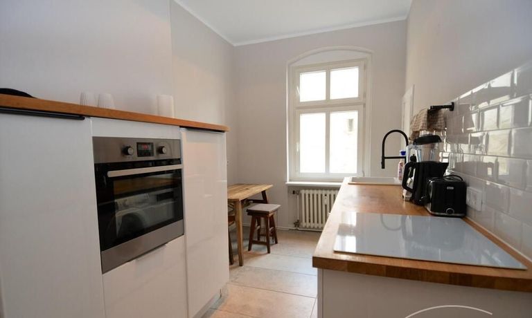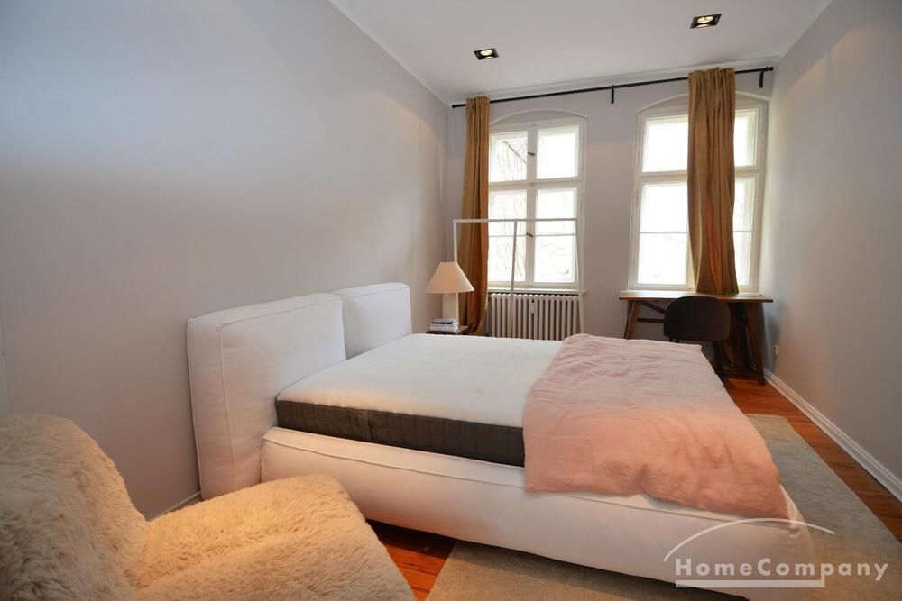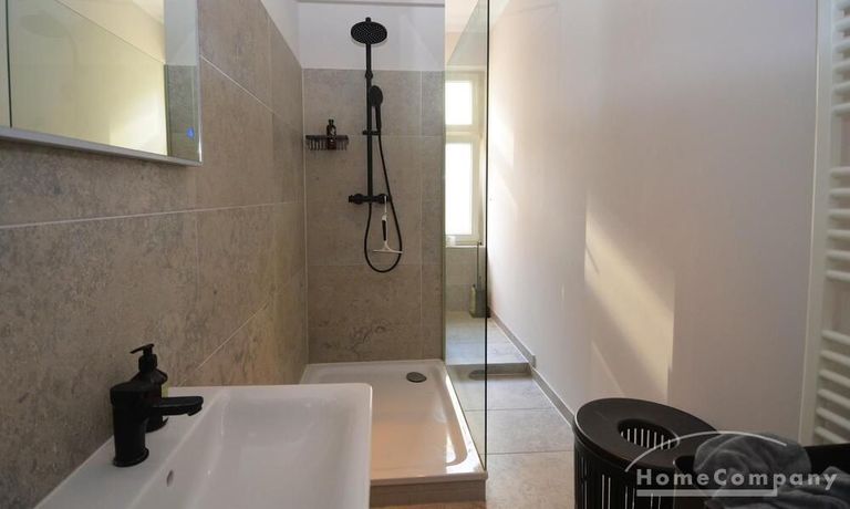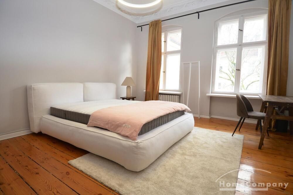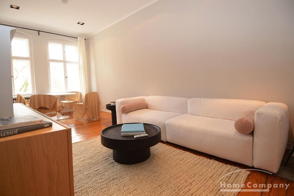 This stylish, fully furnished 3-room apartment with 100 m² is located in a prime position directly at Savignyplatz in Charlottenburg. The apartment impresses with its bright, high-quality interior and wooden flooring throughout. It offers two bedrooms with comfortable box-spring double beds, both with direct access to the spacious living room featuring a sofa and TV. The modern bathroom includes a large walk-in shower. The high-end kitchen is fully equipped with all necessary appliances. Internet is included. A gym is located directly opposite the building (membership approx. 40€ per month). A parking space is available upon request for 160€ per month