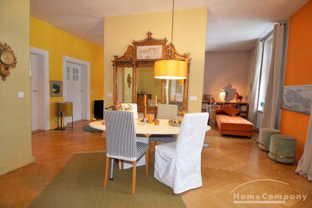 This exceptionally spacious, fully furnished three-bedroom apartment is located in a charming historic city villa within the highly sought-after Ludwig Hoffmann Quarter in Pankow. The protected heritage ensemble, set within a generous park-like garden, offers a rare combination of urban convenience and peaceful surroundings.