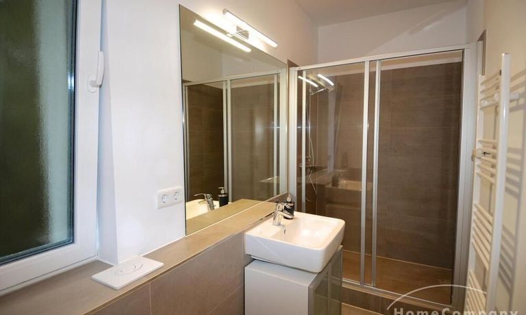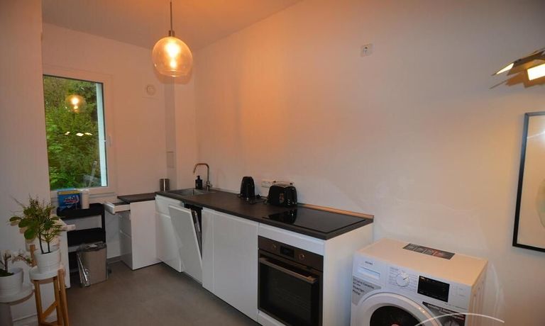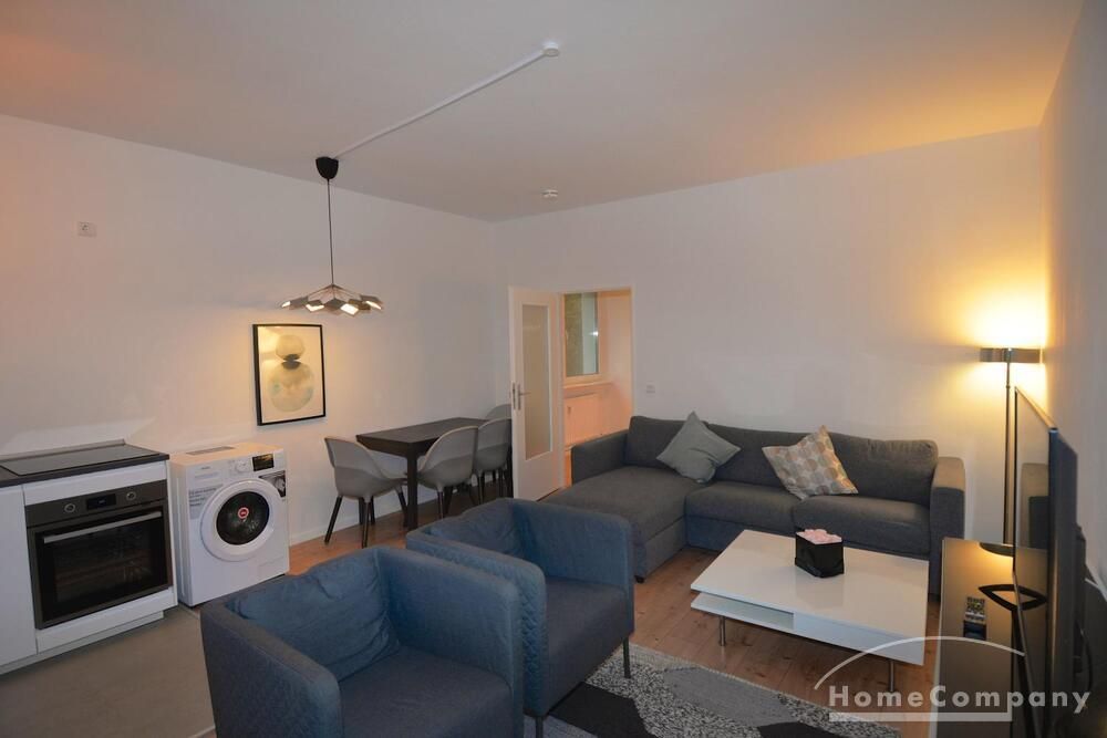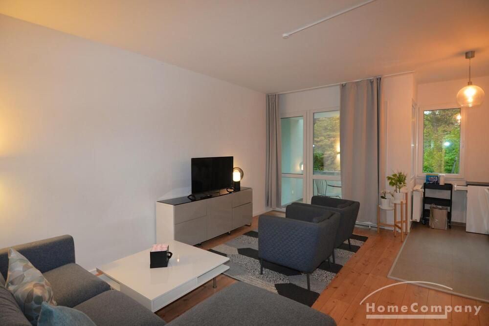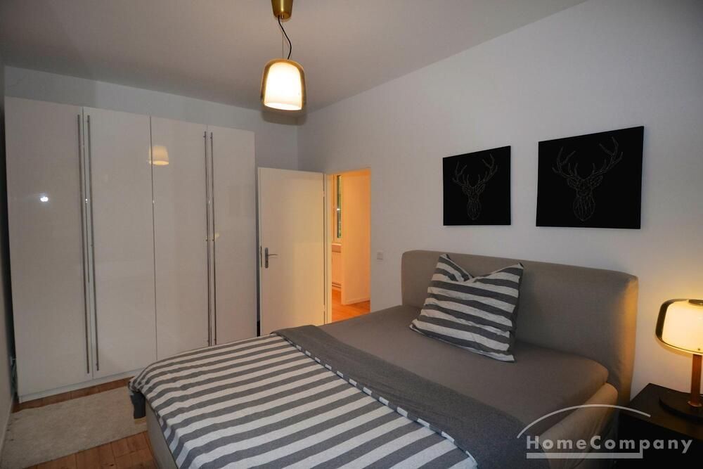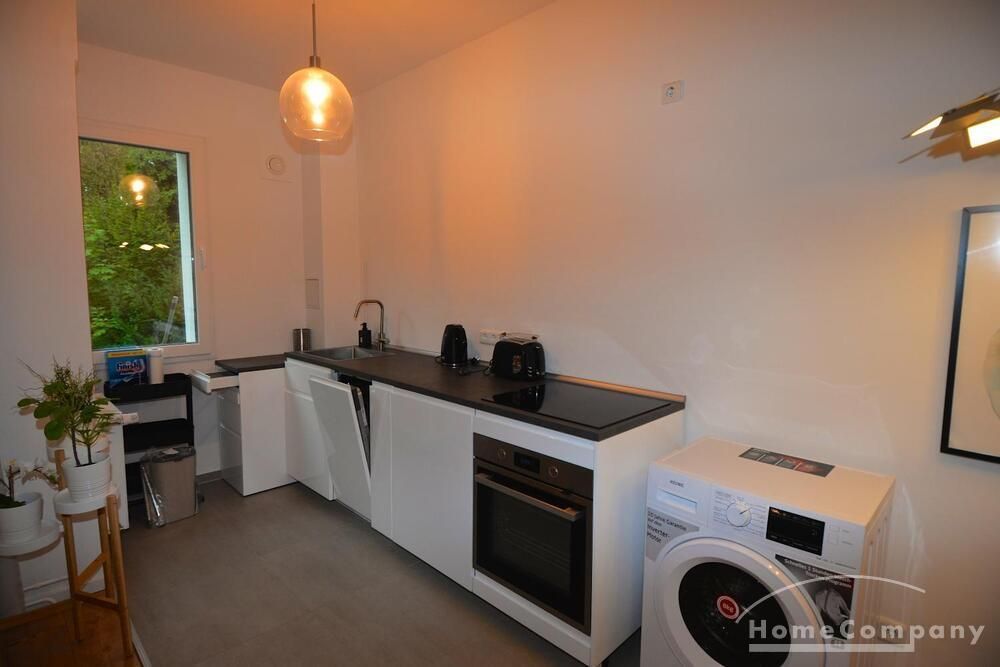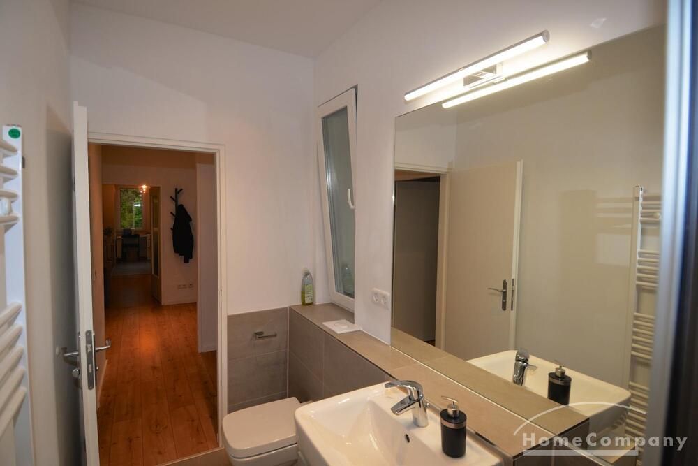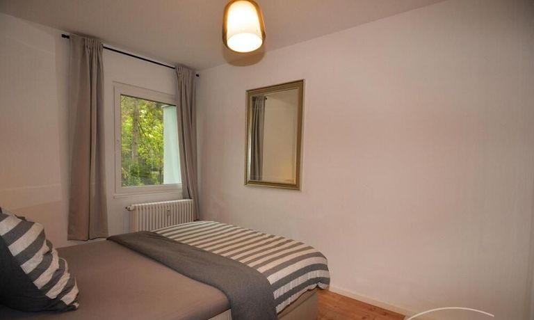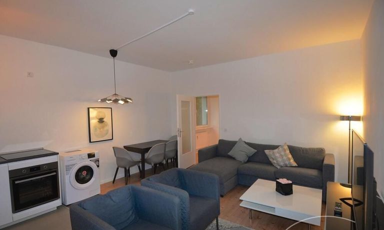 The apartment is located in a very quiet and green area in the Grunewald district. It is a 2 room apartment with an open kitchen and a new shower room.