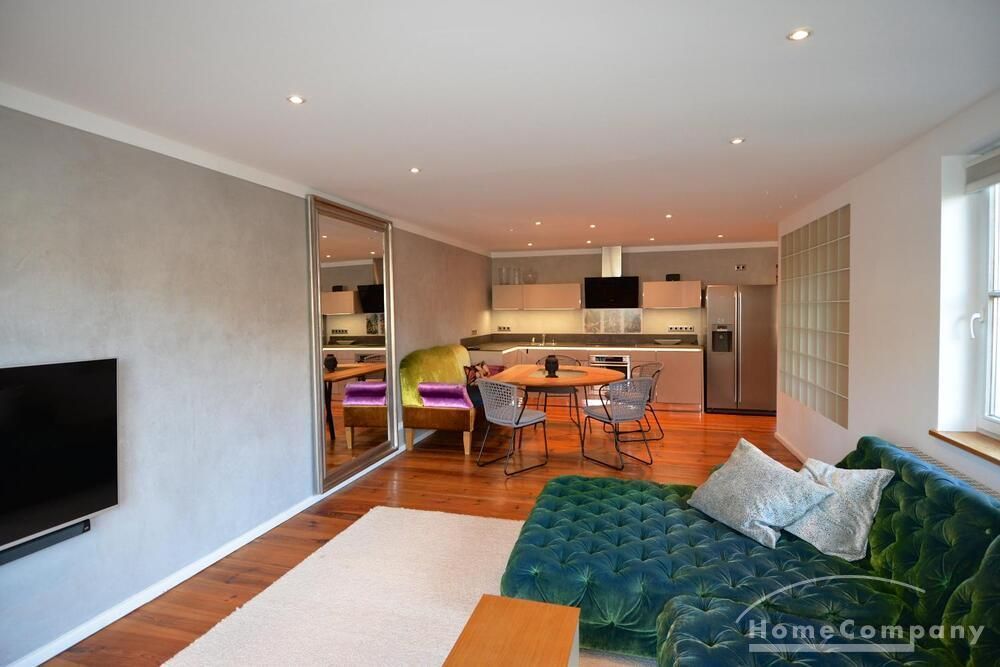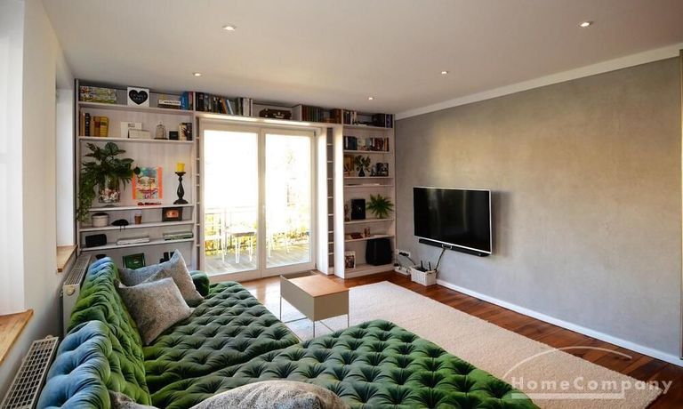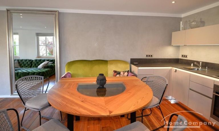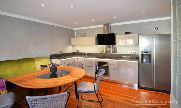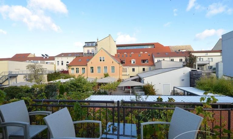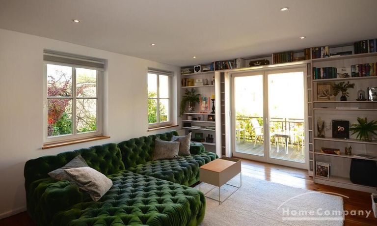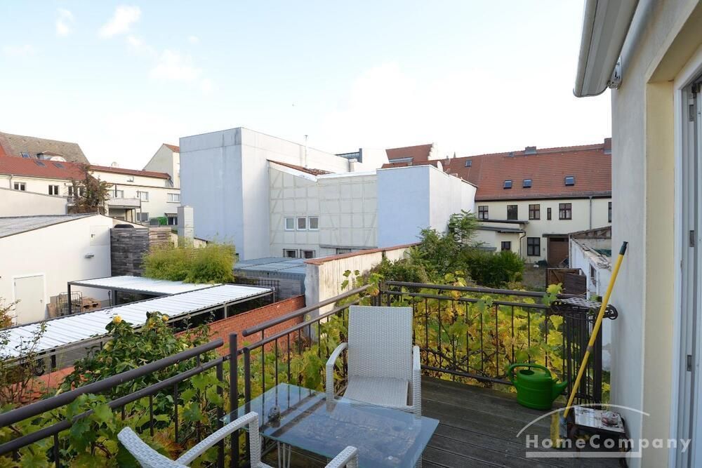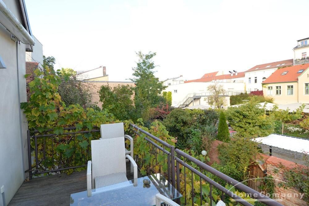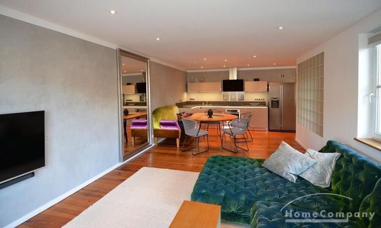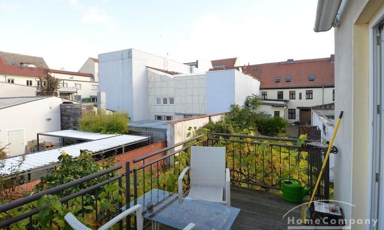 From the open living room and kitchen area you can enter the big balcony from where you can enjoy view of the city of Potsdam.