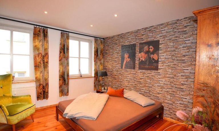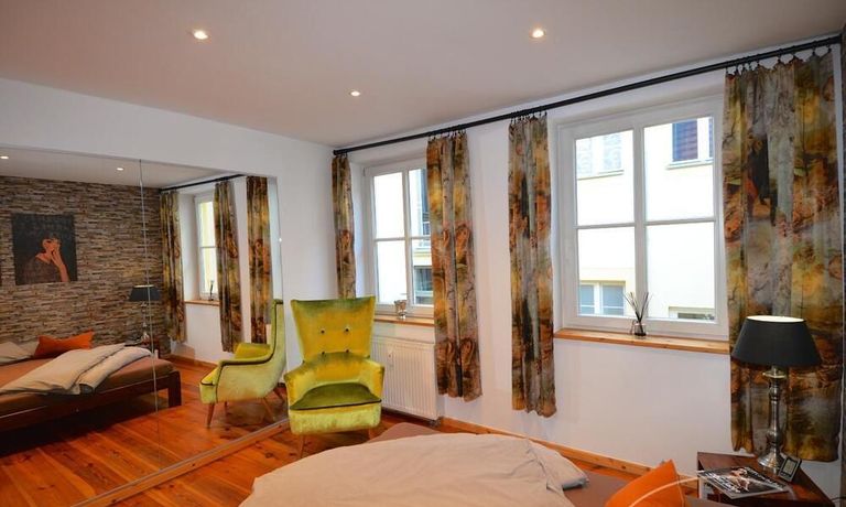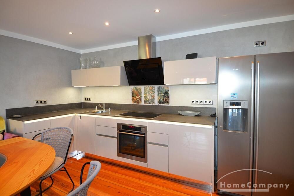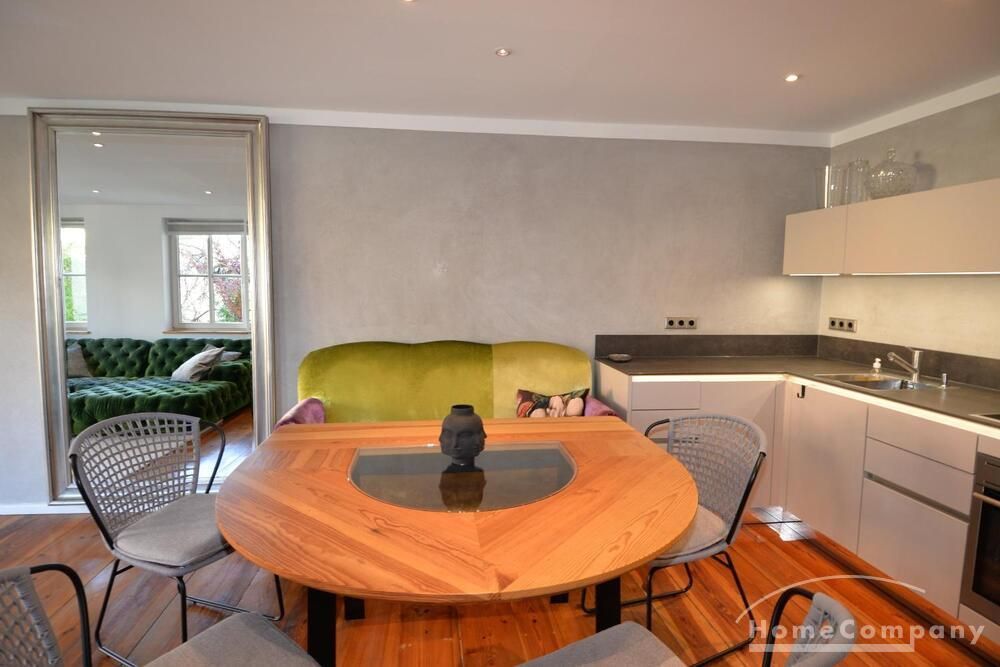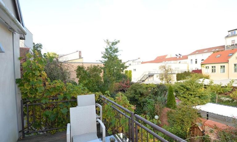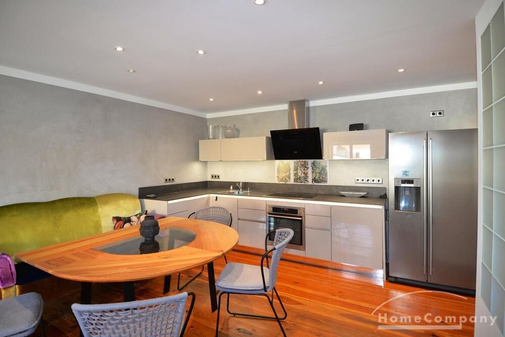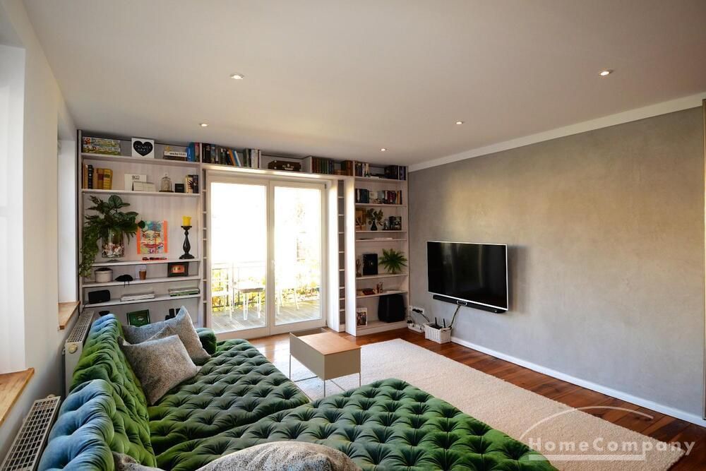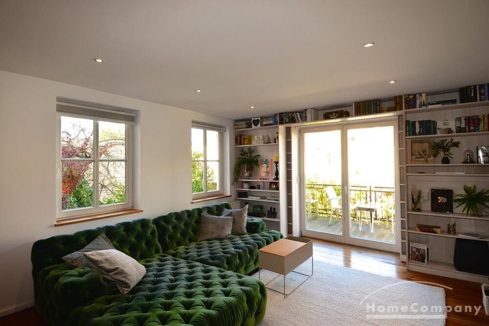 From the open living room and kitchen area you can enter the big balcony from where you can enjoy view of the city of Potsdam.