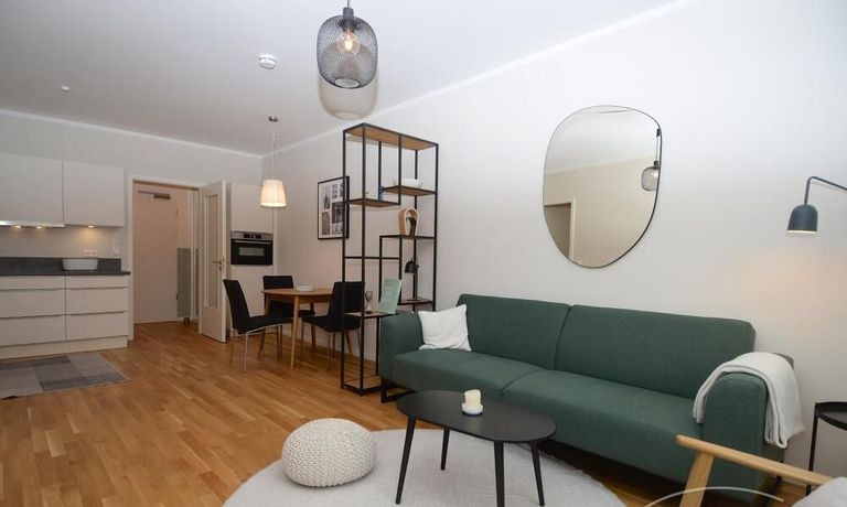 The apartment is barrier-free, furnished to a high standard, and offered fully furnished.