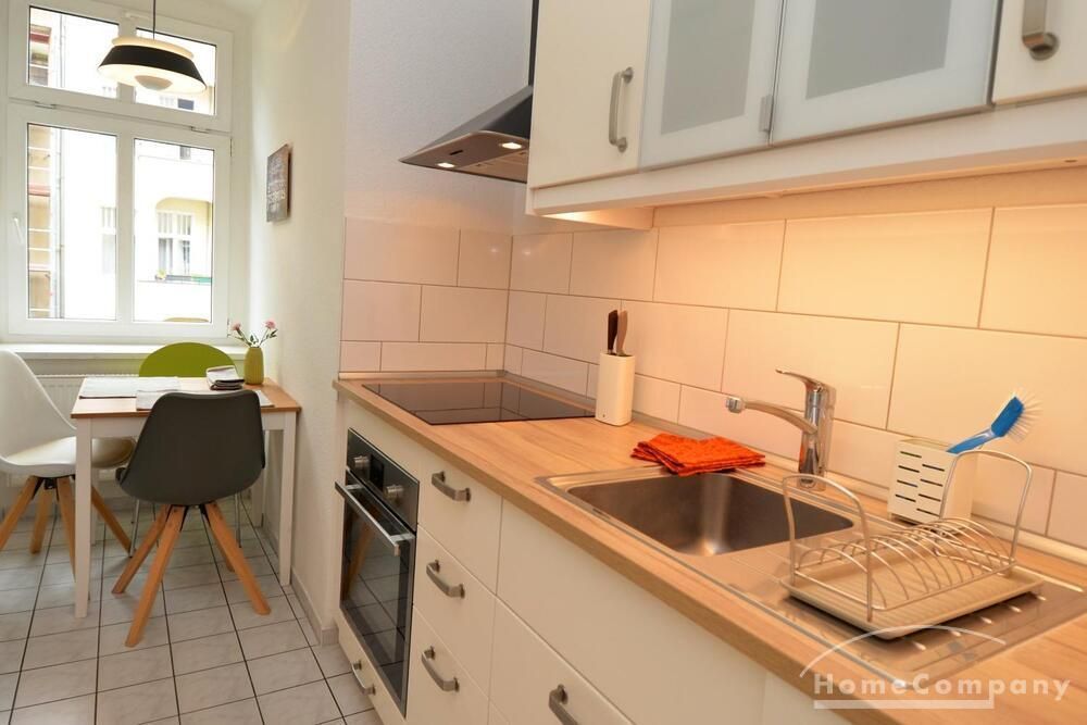 In the “balcony room” there is a pull-out sofa bed with slatted frame (140cmx200cm) and mattress cover, so that it is possible to sleep restfully on it for a longer period of time. A TV from Panasonic is available. In the second room there is a sofa as well as an oak desk and an oak bed with a high-quality cold foam mattress (140cmX200cm).