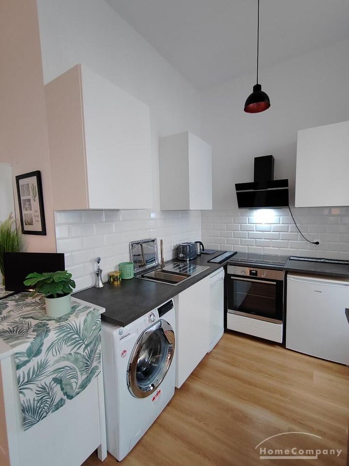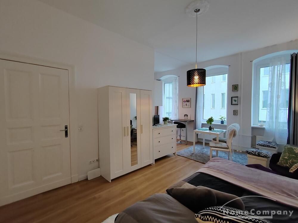 The beautiful old building apartment with high ceilings and large windows that let in lots of light is located in the quiet inner courtyard on a street that has been voted the most beautiful street in Germany.