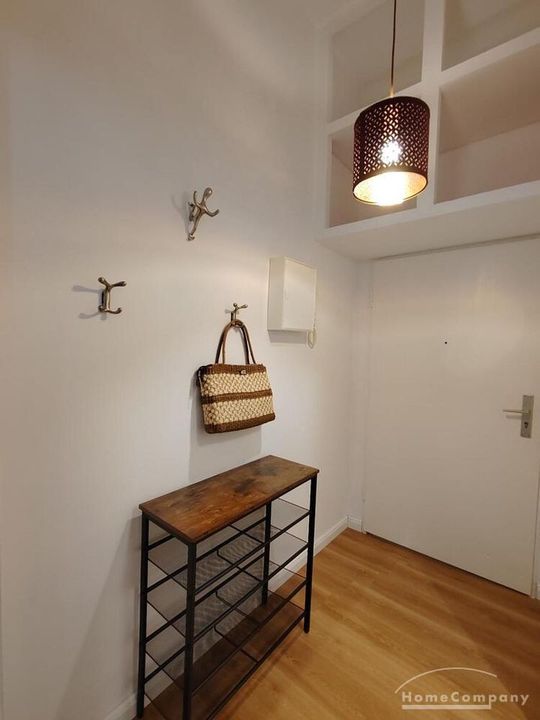 You enter the apartment through a hallway, in the built-in closet there is plenty of space for suitcases etc. In the beautiful room there is a 1.40 m bed, a desk and a spacious wardrobe and if you go around the corner you have a small kitchen . Apartment shower room, washing machine and internet.