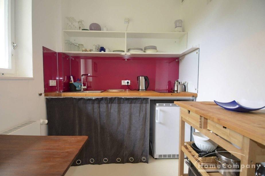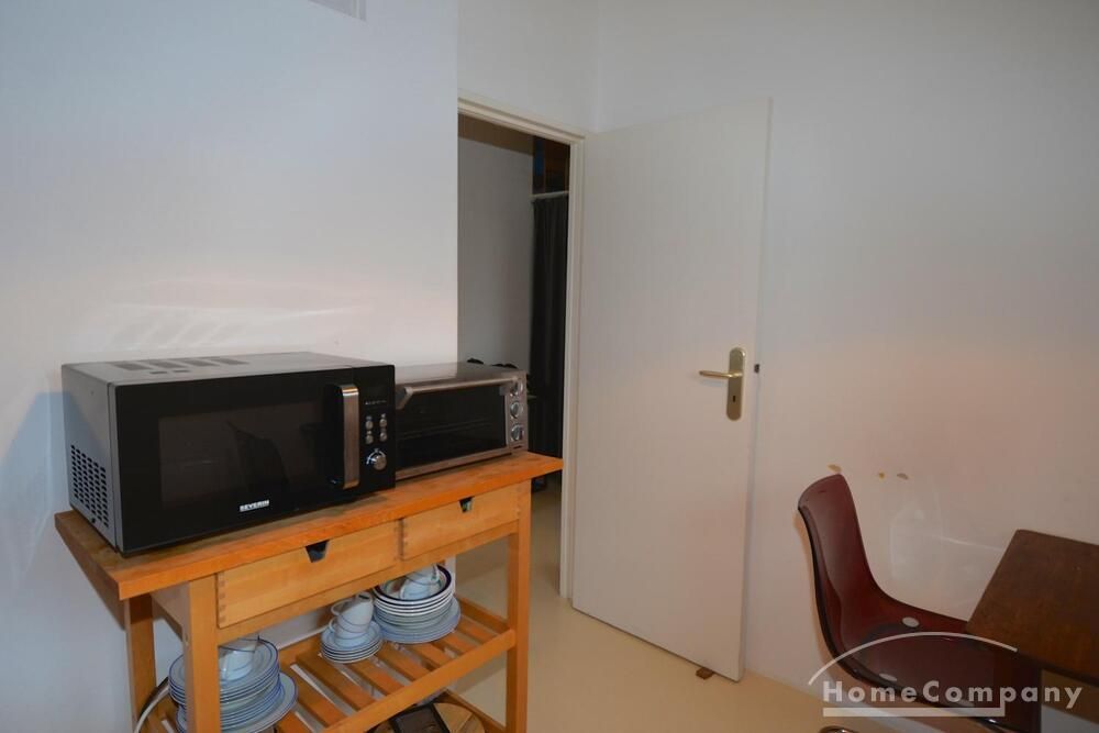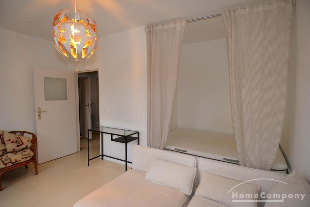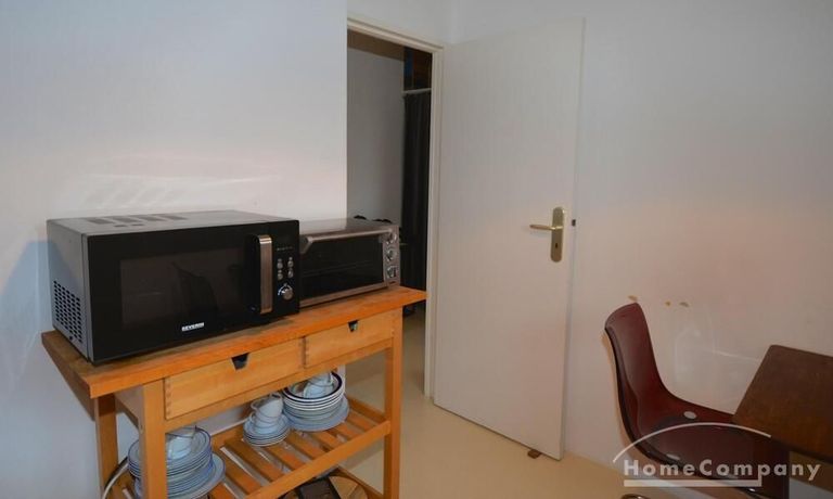 Sunny studio flat with balcony and wonderful view on to green yard, located in in the South of Berlin – in Tempelhof. Completely equipped with Vintage and IKEA furnishings. High class bathroom. Equipped kitchen inclusive glas cooking plate and small oven.