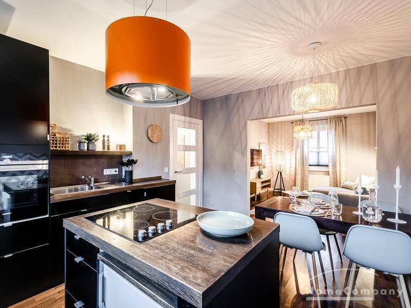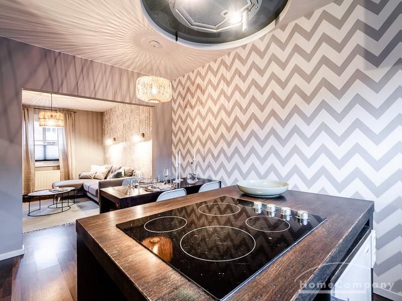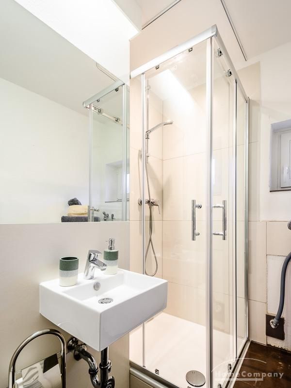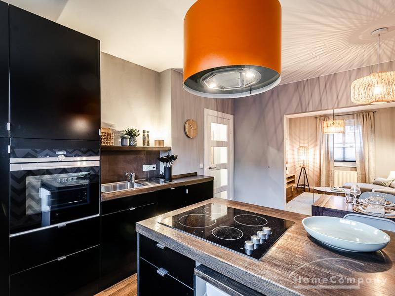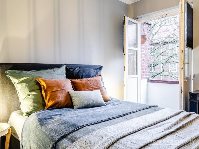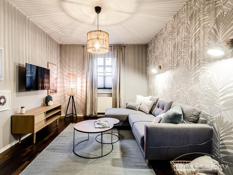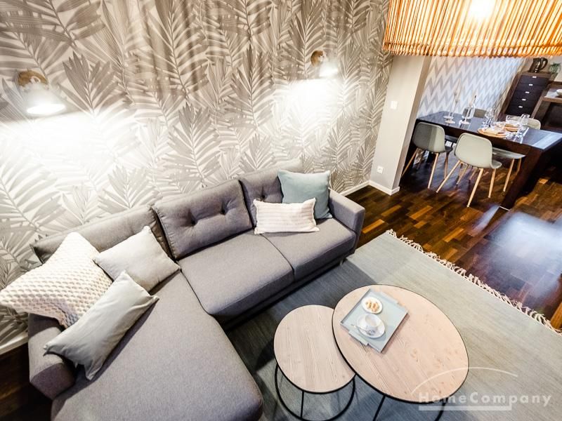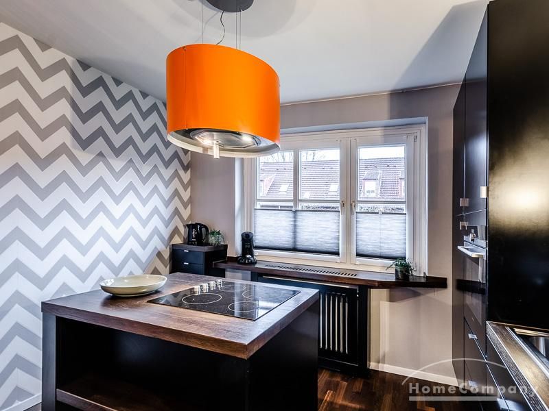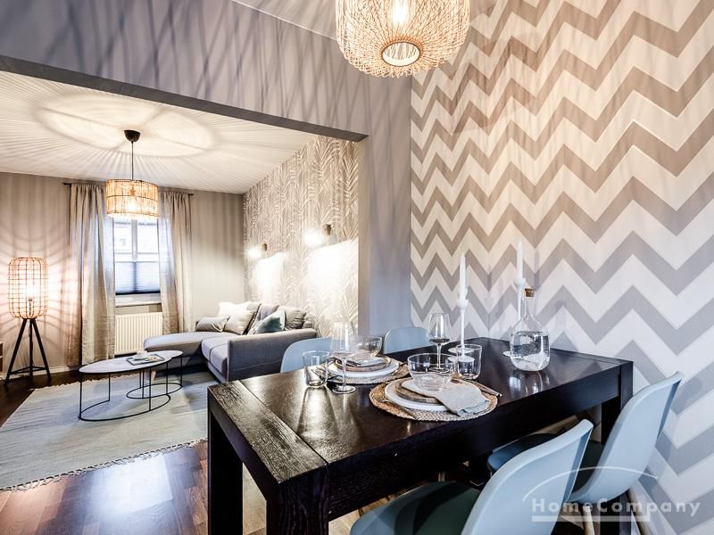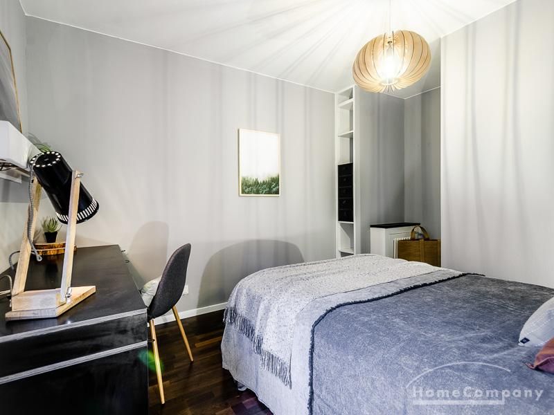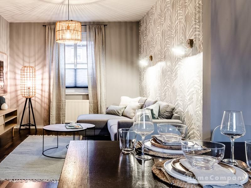 This complete furnished apartment is a high quality oasis of peace in the popular district Ottensen. The nature @ work style combines an urban, modern lifestyle with a contemporary stylish business look, comfort, originality and an urban, multi-faceted furnishing style. The large kitchen is kept open to the living room. The bright daylight bathroom has been equipped with a new shower and a washing machine. The 1.40 m box spring bed guarantees high sleeping comfort. From the bedroom you can reach the small balcony and the large, walk-in wardrobe. The built-in wardrobes in the hallway further storage options.
