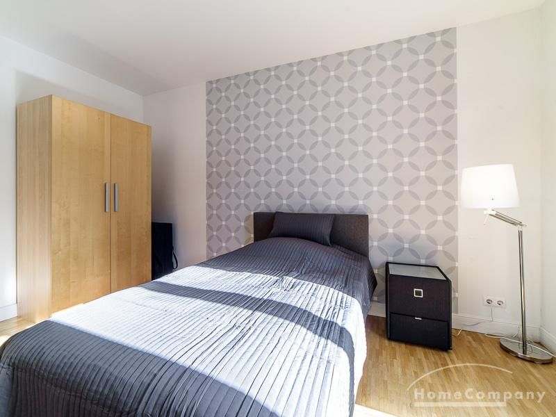 Very central located and furnished 1-room apartment. The bedroom is furnished with a 1.20m wide boxspringbed. The modern, pleasant-plan living / dining room has a fully equipped kitchen and a dining table for two. The new, modern chaise lounge invites you to relax. The bathroom is decorated in white and also includes a washing machine. The apartment is equipped with oak floors and DSL (wifi)