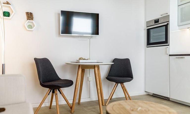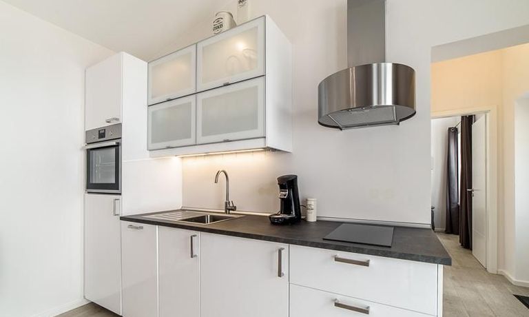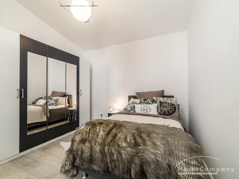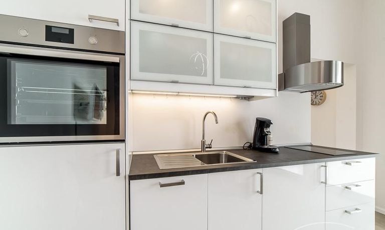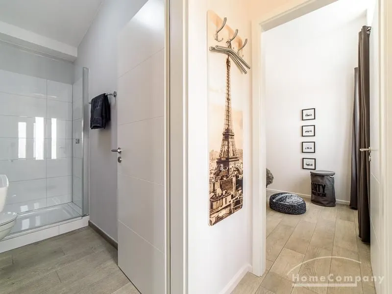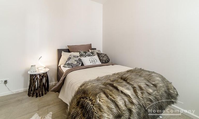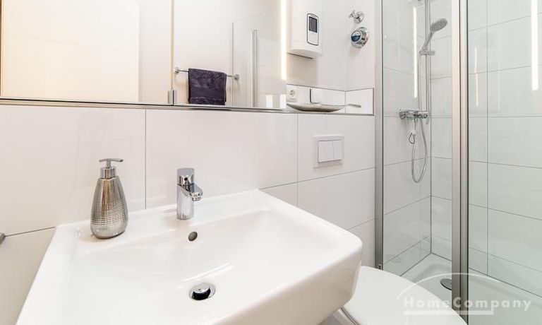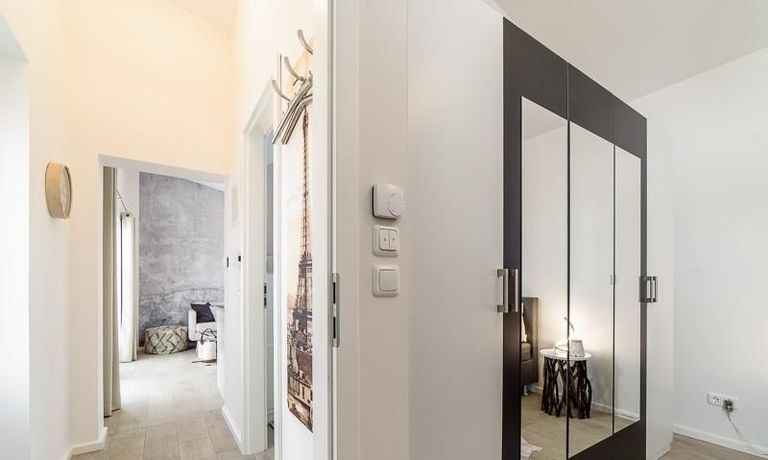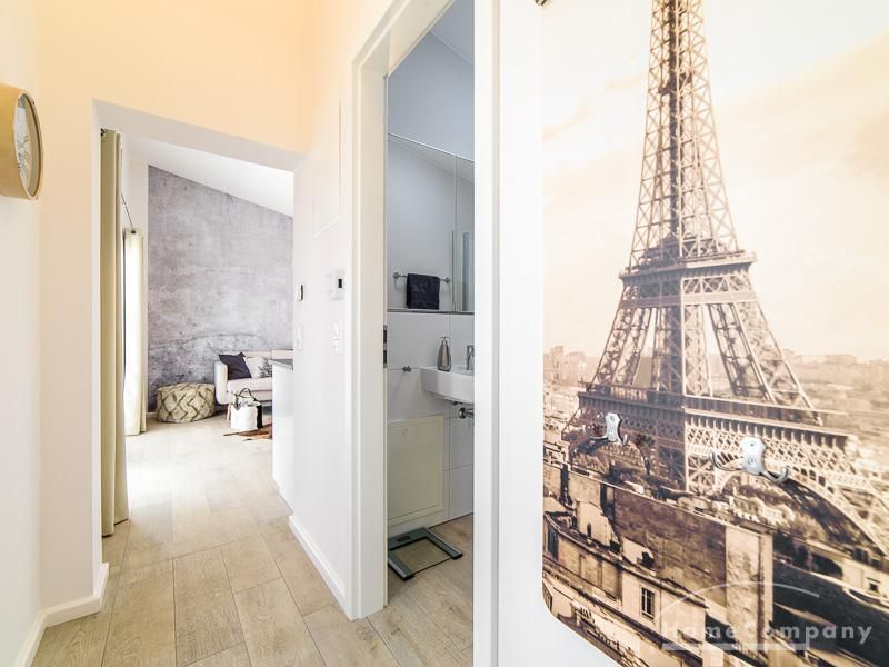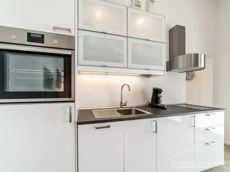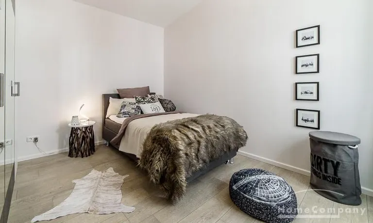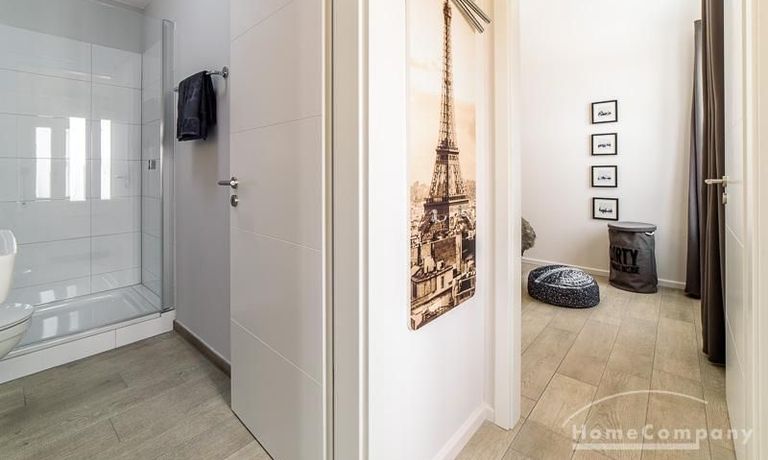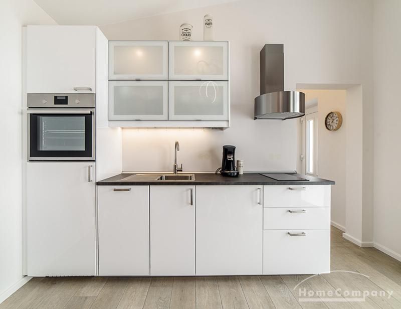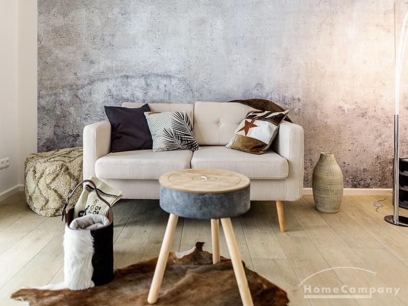 The apartment with floor heating is modern and harmoniously decorated. A bright sofa invites you to relax. A practical side table made of blue cotton, hemp rope and fir wood combines functionality with design and is a real sight. The wall design, the high, oblique ceilings and carefully chosen acceccoires lend the styling a contemporary business ambience. Other contrasting accents, such as the beautiful blessbock fur, an order basket with cozy additional sofa blanket and a fabric pouf complete the overall look. The open high-gloss kitchen is equipped with a washing machine, dishwasher and a Senseo coffee machine. The bright bathroom with underfloor heating, generous shower, scales and hair dryer offers every comfort. The bedroom is equipped with a 1.20m boxspring bed and a 2.70m wardrobe with additional inside drawers. Made-to-measure pleats, which can be adjusted in any position from the top and the bottom, offer a high degree of visibility and sun protection on all windows and provide for gently filtered, natural light in the room. Additional curtains create a pleasant ambience even in the evening hours. The apartment has a terrace and is located in the absolutely quiet inner courtyard of a little busy side street, only 1.2 km from Dammtorbahnhof and the city center.