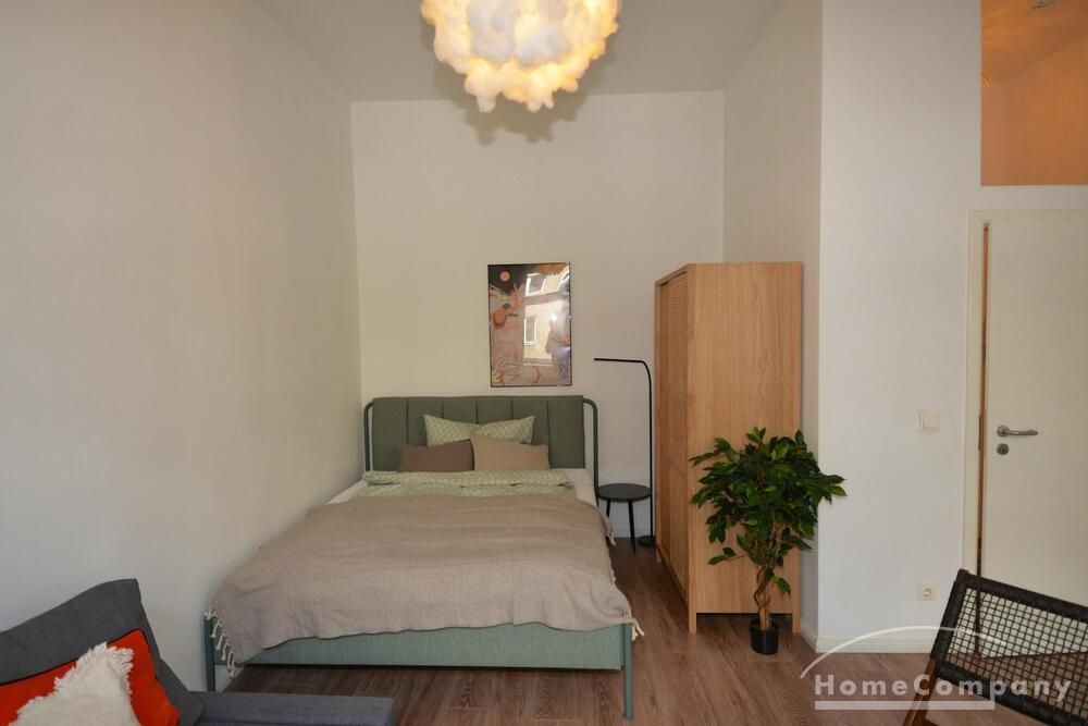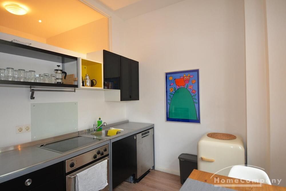 Property in an apartment building, originally 1919, completely renovated in 2017, 15 units, near Tempelhofer Feld. Attractive from the outside and inside. Entrance area stucco ceilings, old staircase. Apartment with hallway (3.5 sqm), bright living room with 2 windows facing the street (22 sqm), kitchen (7.5 sqm), bathroom (6 sqm). Fully furnished, modern furnishings, lots of new additions, stylish, equipped kitchen, TV, wood look floors.