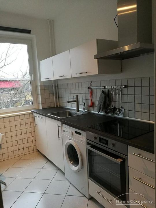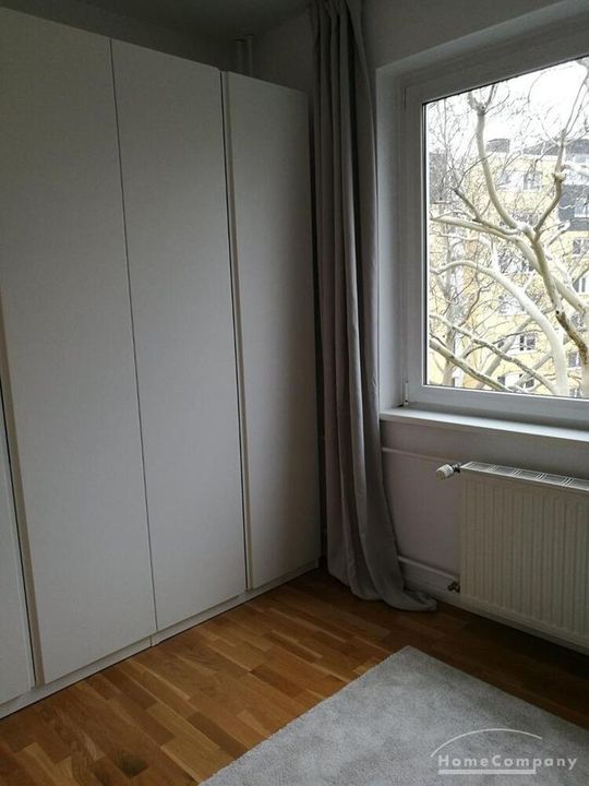 Newly renovated 3-room apartment in Wilmersdorf. The bedroom offers a double bed with a large wardrobe. The second room offers another sleeping possibility on its single bed. Modern daylight bathroom with walk-in shower. Kitchen with fitted kitchen and washing machine.