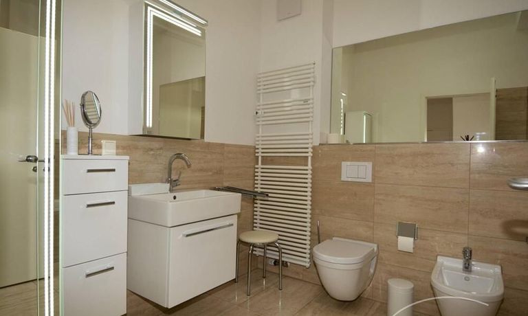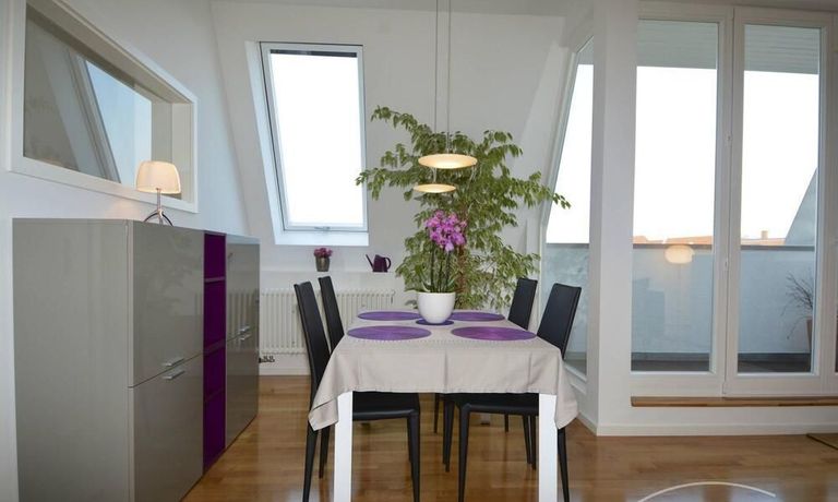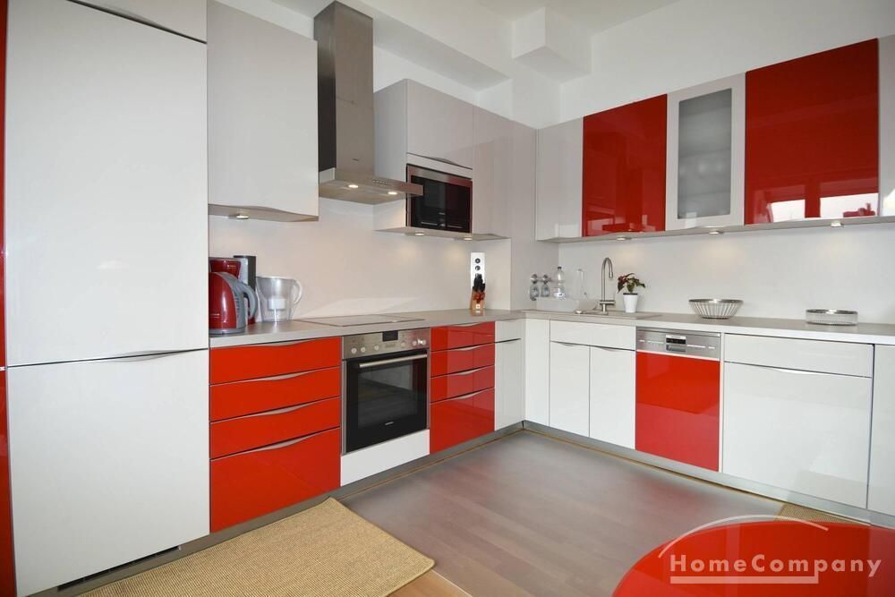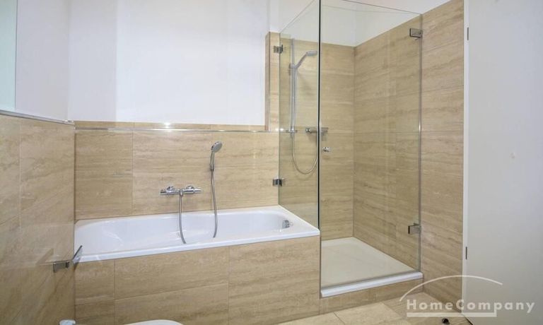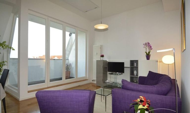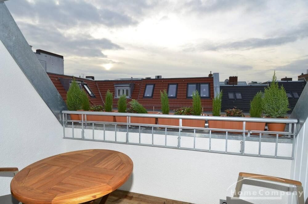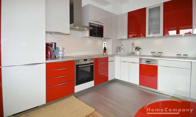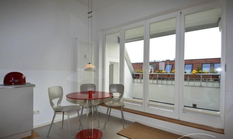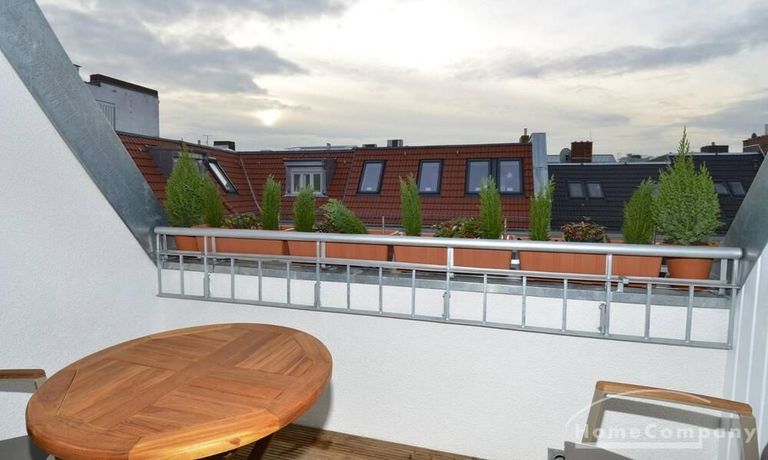 This extraordinarily beautiful premium apartment is situated on the top floor of a refurbished prewar building in the center of Charlottenburg, West-Berlin. It comrises a gorgeous living room with balcony (great view onto the green neighborhood), a bright and comfortable bedroom with a doublebed and wardrobe, and a home office with desk. The modern, classy kitchen is separate and features all kinds of devices (including WMF and Villeroy & Boch), a washing machin, a dishwasher, and it is adjacent to the second balcony that faces South. The spacious bathroom offers a bidet, a bathtube and a separate shower.