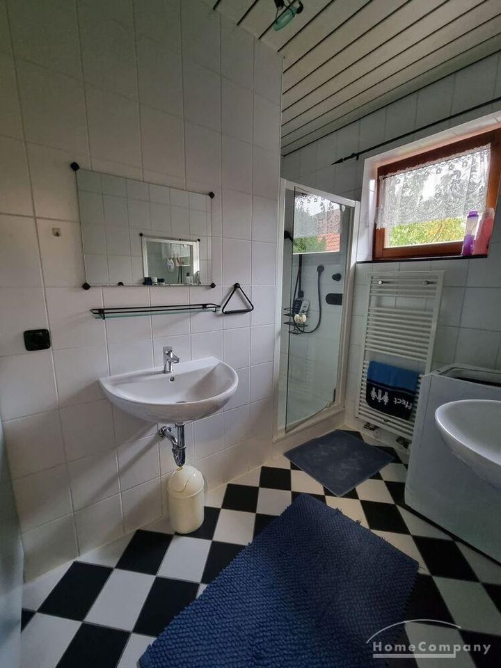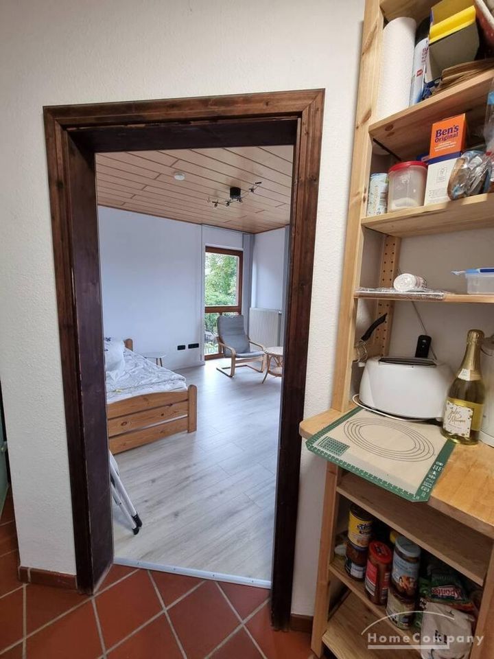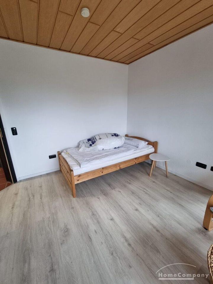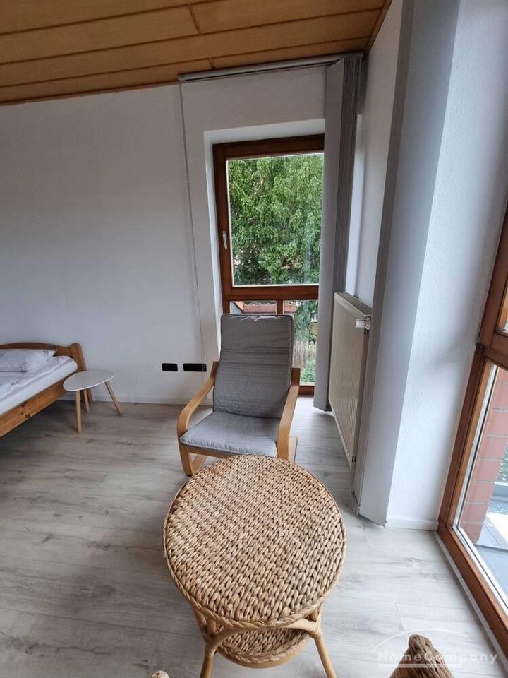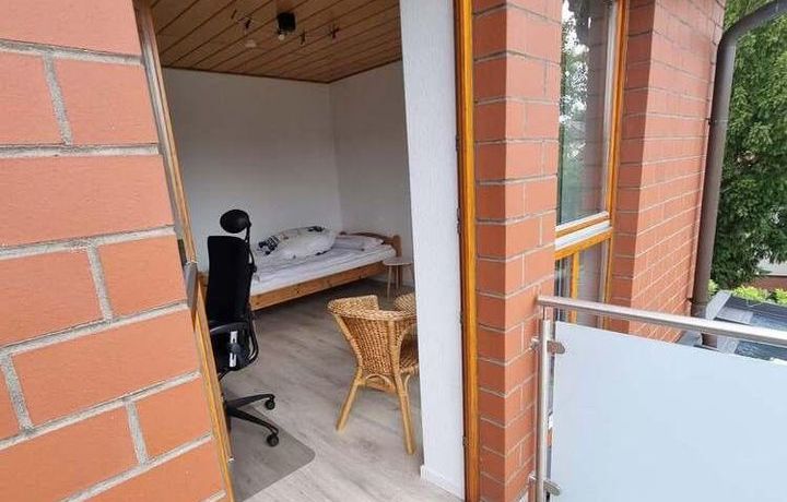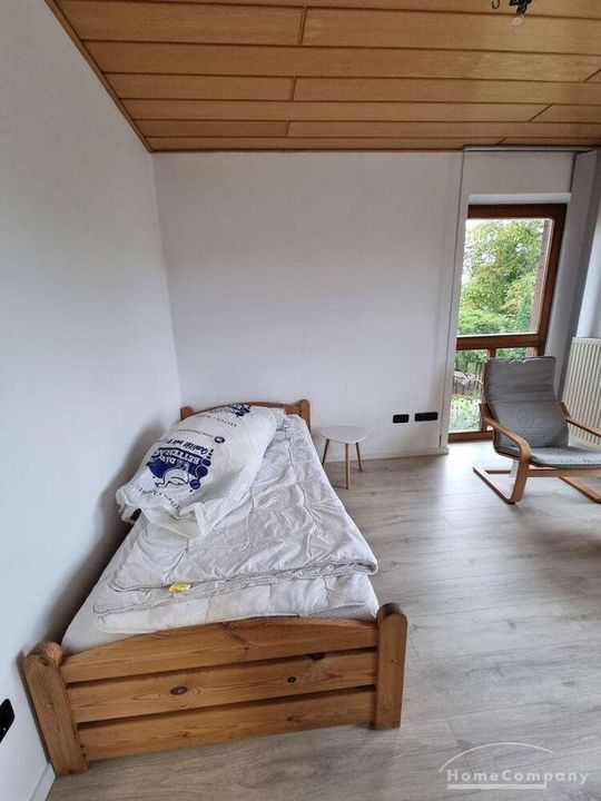 1 möbliertes Zimmer, 1. OG., in einer 2 Zi.-Wohnung (insges. ca. 55 qm) bzw. 2er WG mit einem Mann. Zugang zum Balkon (gemeinschaftl. Nutzung), Pantryküche, Bad mit Dusche und 1 Gäste WC. Waschmaschine und Trockner vorhanden. Fahrradstellplatz im Carport. Kaltmiete 200,- €, Miete incl. NK, Strom, Wasser + Hzg. 390,- €.