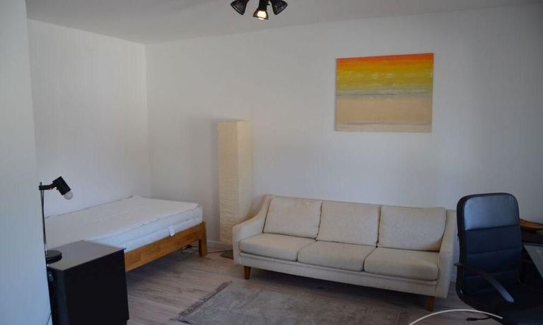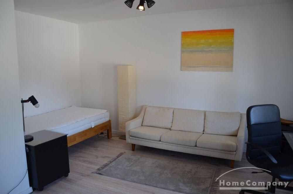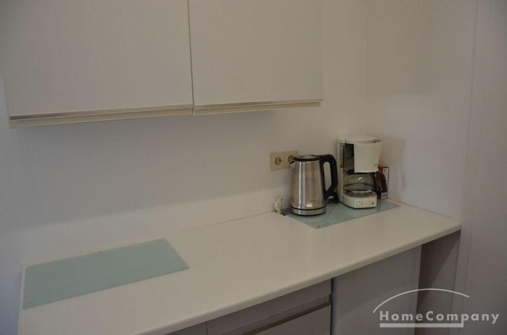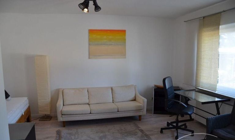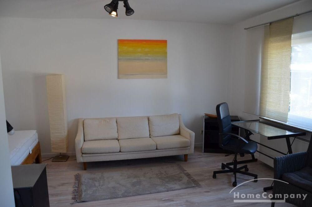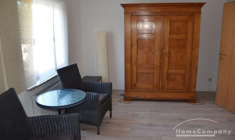1 Zi.Whg., möbl., Hochparterre. Mit Küchenzeile. Nur für Wochenendheimfahrer. Miete 560,- € inkl. NK, Hzg.; zuzügl. Strom nach Verbrauch (30,- Vorauszahlung). 14-tägige Reinigung nach Absprache und gegen Aufpreis möglich. Nur für Nichtraucher. Es gibt keine Waschmaschine. Reinigungskosten bei Auszug 150,- €.