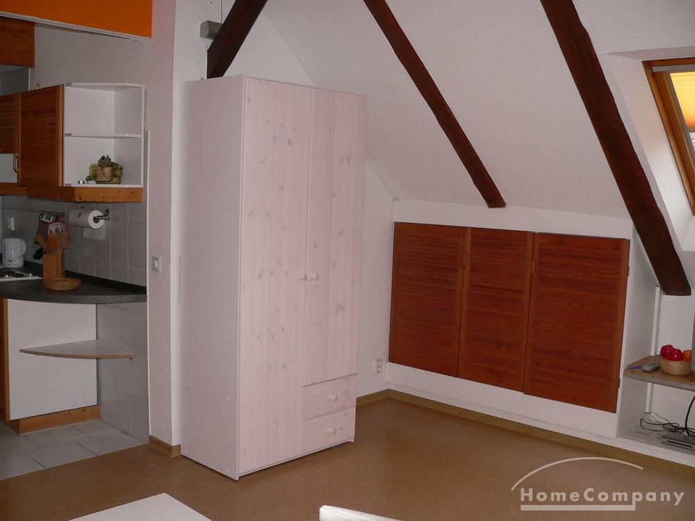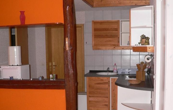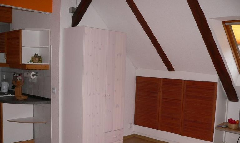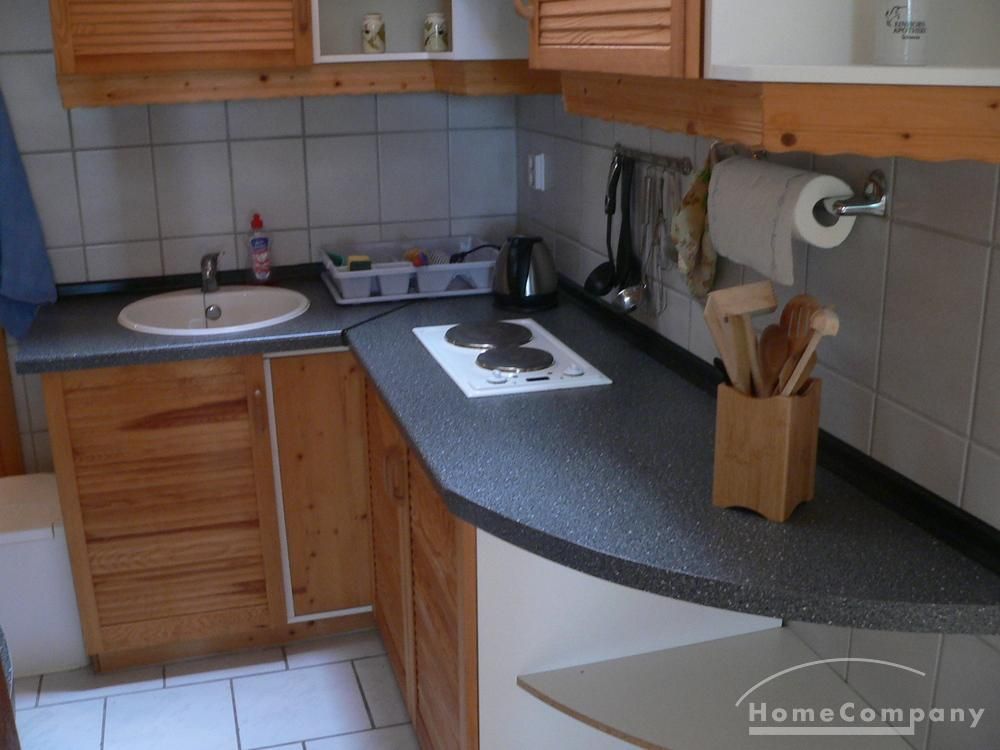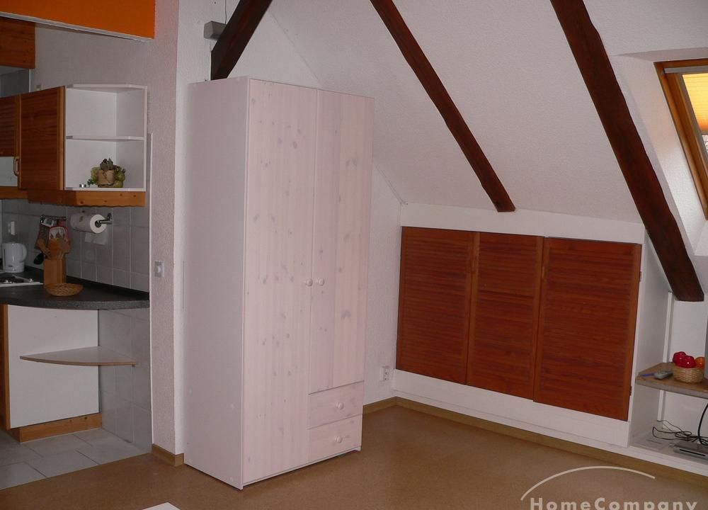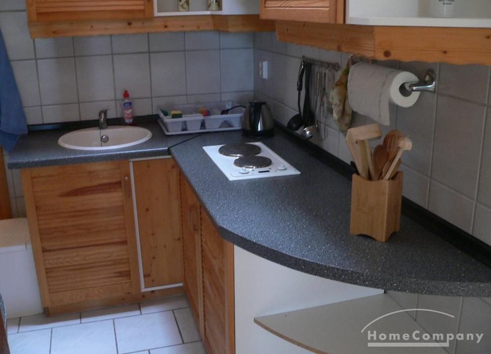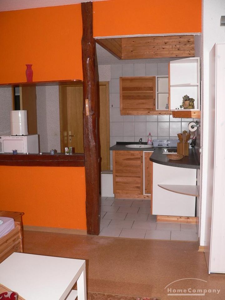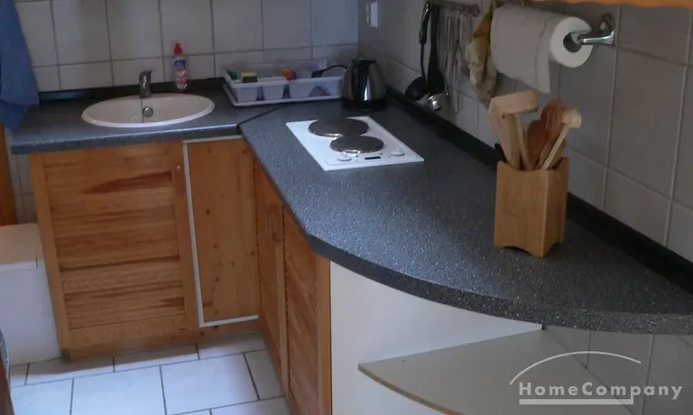 1 Zimmer Wohnung in einer privaten Pension, DU/WC, Wohn- Schlafraum mit einem Bett, Kleiderschrank, TV, Küchenecke mit Kühlschrank, Spüle und 2 Herdplatten