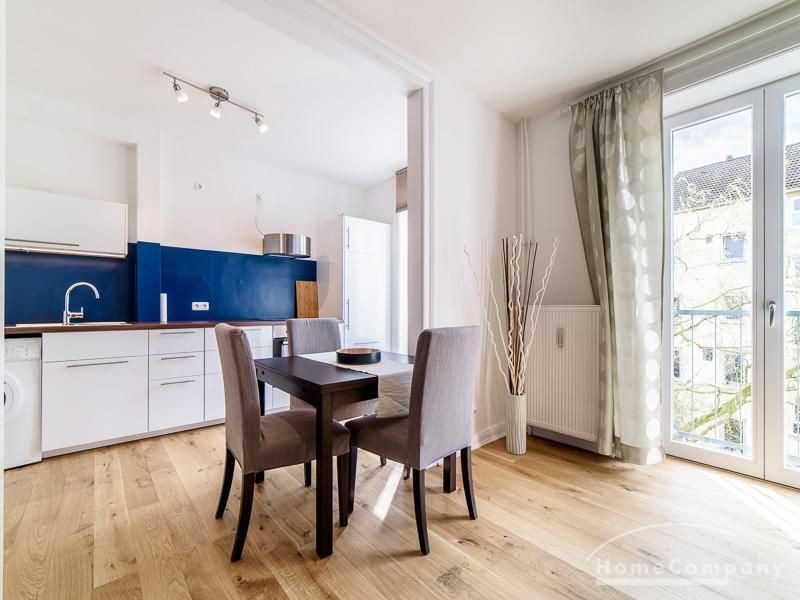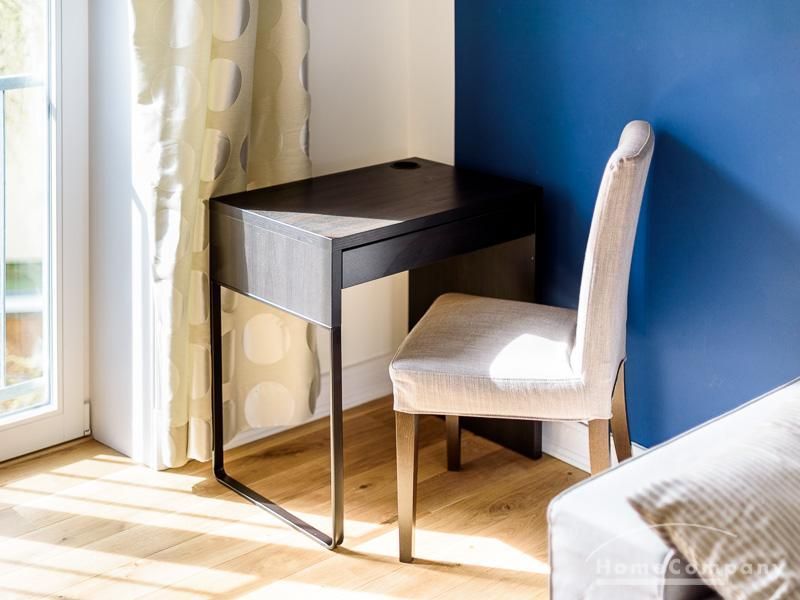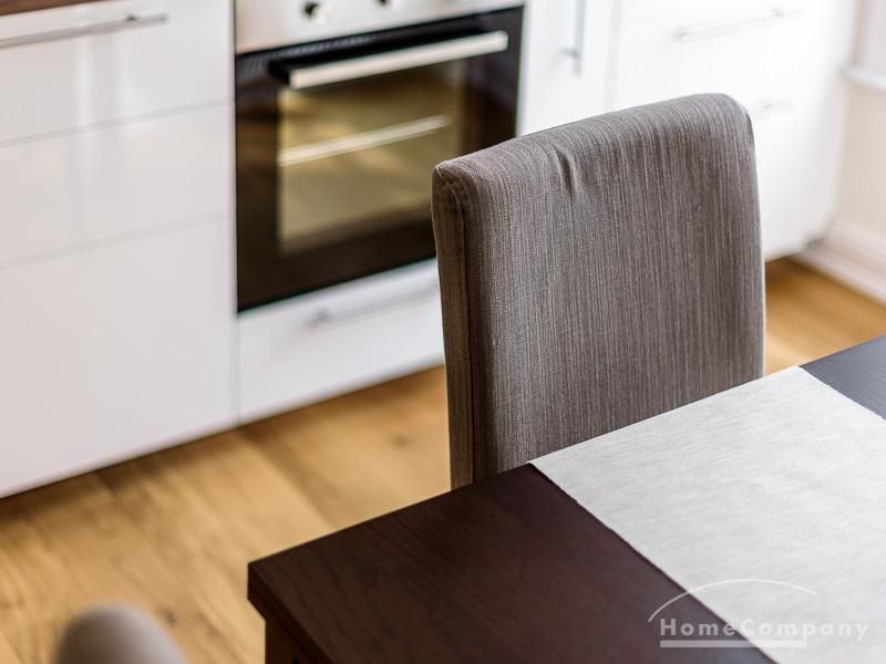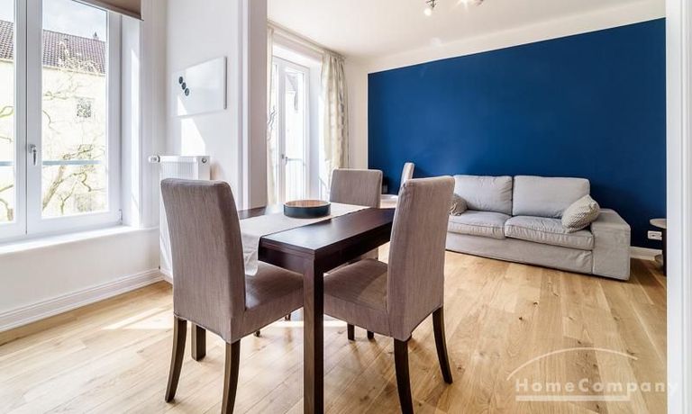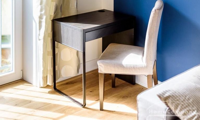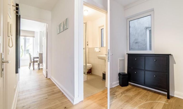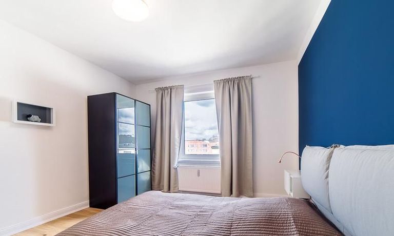 Voll ausgestattete Wohnung – zentral zwischen Uni und Messe. Sie verfügt über eine offen gestaltete Küche mit einem Essplatz, sowie einem Wohnzimmer. Das Schlafzimmer ist mit einem 1,60 m breiten Bett ausgestattet. Außerdem steht ein Gästezimmer mit einem Einzelbett zur Verfügung. Das Badezimmer ist hell gefliest, die Dusche verfügt über eine Glastrennwand. Es handelt sich um eine Inklusivmiete.