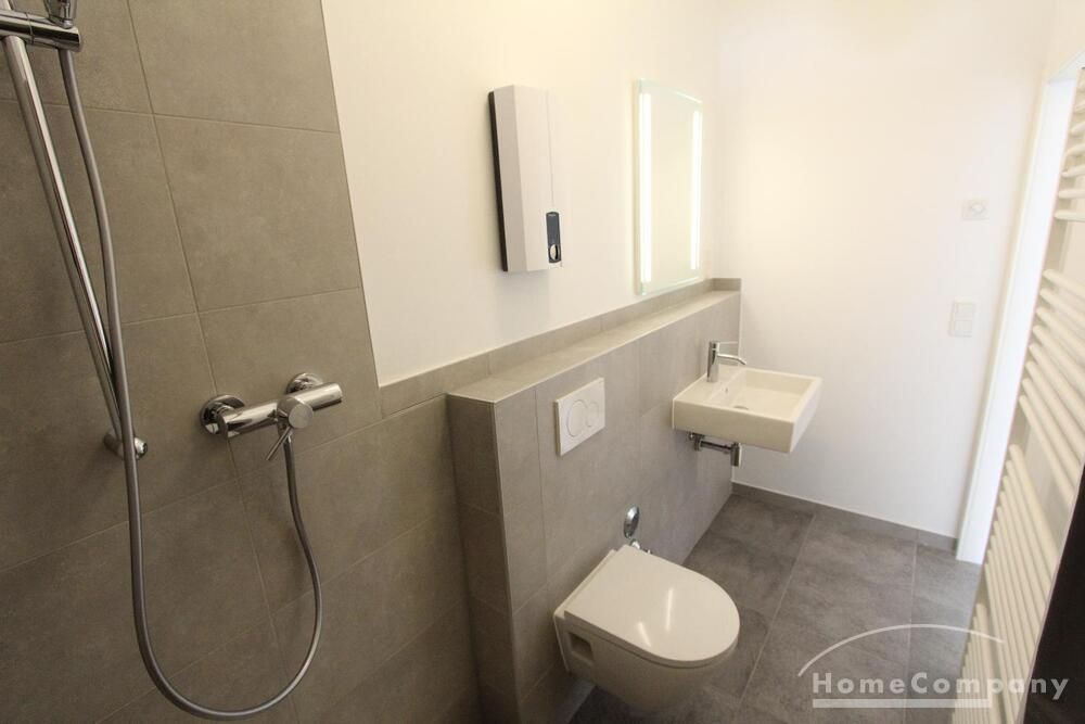 Dort ist auch der Essplatz, direkt an der Glasflügeltür über die man auf den Balkon gelangt, auf dem man die Nachmittagssonne genießen kann. Das Badezimmer ist in modernem Design gestaltet und mit einer bodentiefen Dusche ausgestattet. Eine Diele rundet den Grundriss ab und bietet im hinteren Teil noch einen Arbeitsplatz mit Tageslicht und einen großen Kleiderschrank.