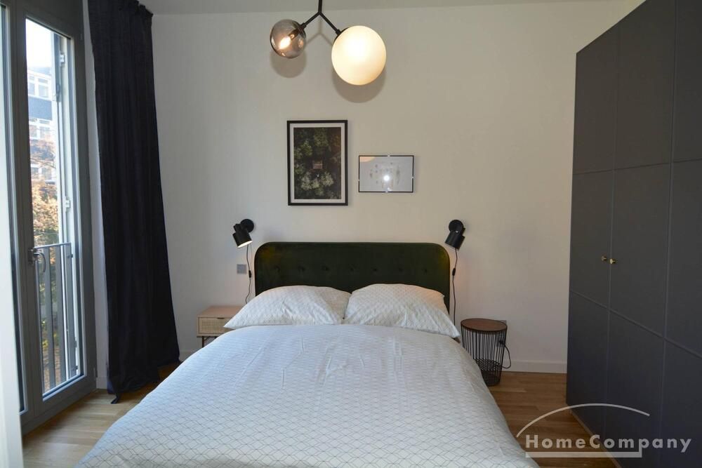 Charmant und modern eingerichtete Zwei-Zimmer-Wohnung in Berlin Tiergarten mit Blick auf die bezaubernde Spree. Komplett ausgestattete Einbauküche mit Esstisch. Kleiner Schlafraum mit gemütlichen Doppelbett (140cmx200cm) und großen Kleiderschrank.