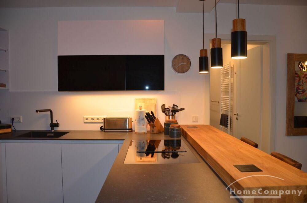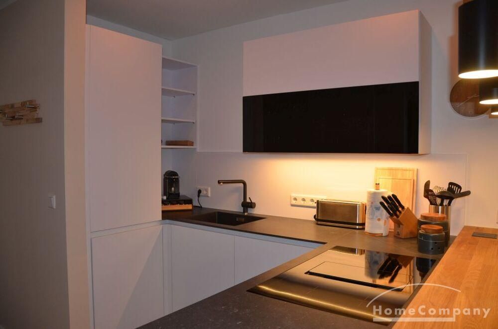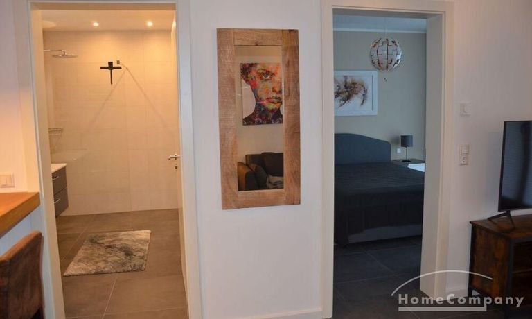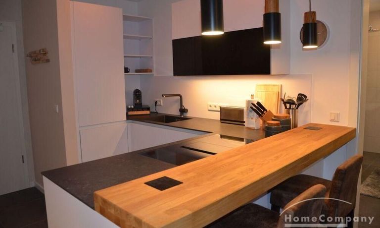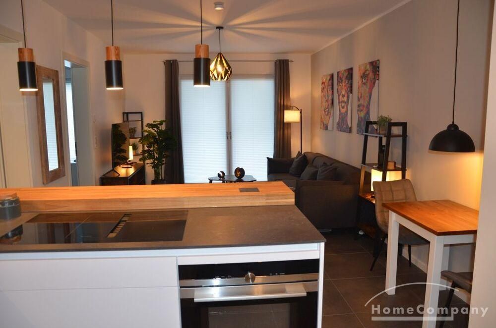 2 Zimmer Wohnung, neu möbliert 1. OG, sehr schön und komplett ausgestattet, Induktionsherd, Backofen mit Mikrowellenfunktion. Fußbodenheizung in allen Räumen. 2 x TV (in Wohn- u. Schlafzimmer), Schlafzimmer mit 160 cm x 200 cm Bett. Waschmaschine im sep. Waschraum in der Wohnung. W-Lan über HTP (30,- €). Miete 1130,- € inkl. Nebenkosten. Zuzügl. Heizung, Wasser und Strom nach Verbrauch (150,- € Vorauszahlung). Miete bei 2 Personen etwas höher. Ab 6 Monate bis länger zu mieten.