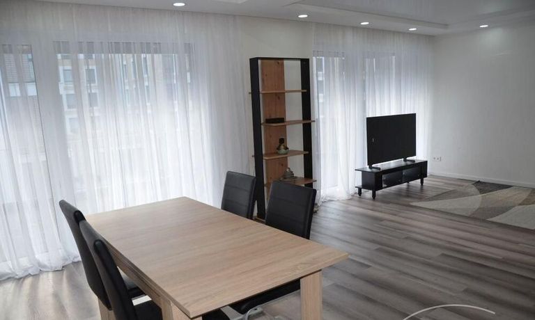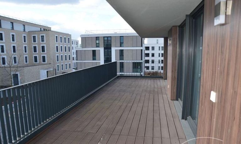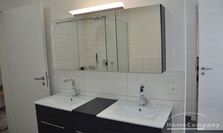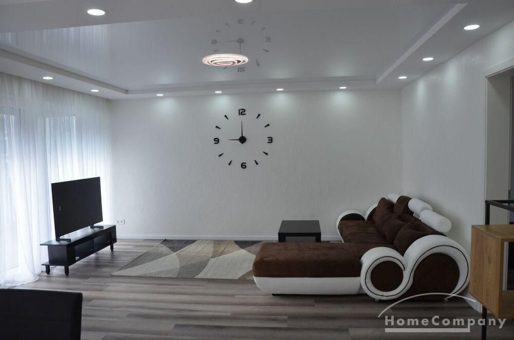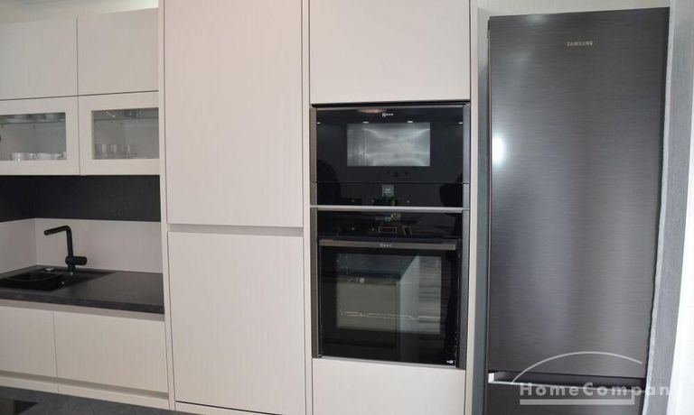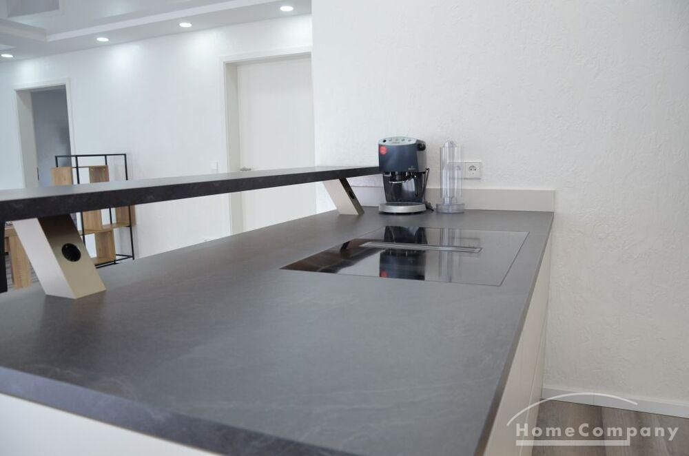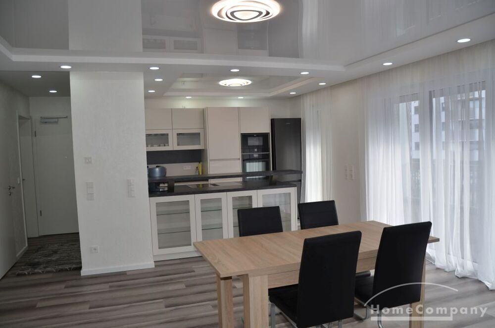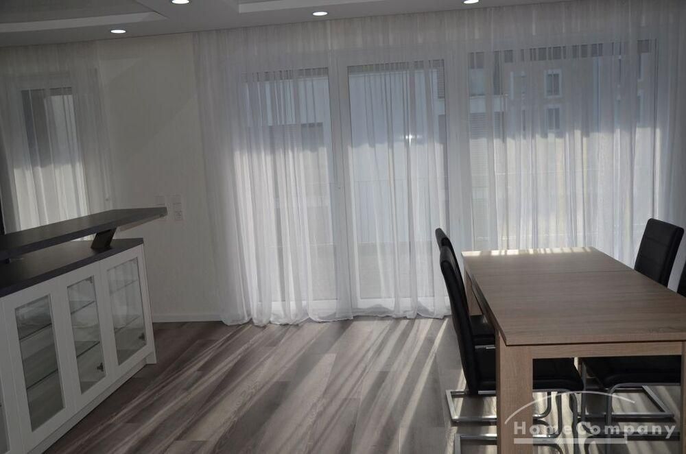 3 Zi. Wohnung, 2. OG, hochwertig möbliert und ausgestattet, barrierefreie Wohnung mit Aufzug von der Tiefgarage bis zur Wohnung Erstbezug nach Sanierung, Spanndecken mit eingebauter Beleuchtung, Fußbodenheizung. Großes Wohn-/Esszimmer mit offenener Einbauküche mit Zugang zur großen Terrasse (28 qm). Das dritte Zimmer ist als Besucherzimmer oder Kinderzimmer nutzbar. 2 sep. Abstellräume, sep. Fahrradraum. Miete 2000,- € zzgl. ca. 320,- € Neben- /Verbrauchsekostenvorauszahlung. Nebenkosten entsprechend höher bei 3 Personen.