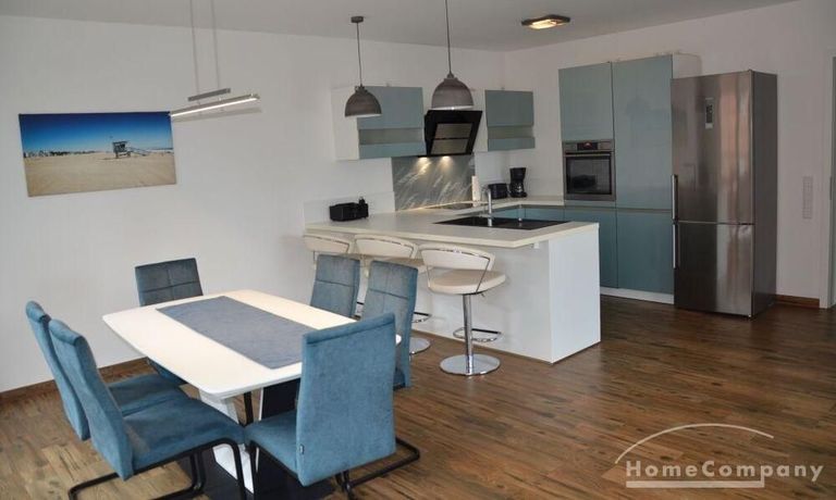 4 Zi.Whg., möbliert, 1. OG, mit Balkon. Neubau mit Fußbodenheizung, Vinylböden. Die Whg. ist renoviert und neu möbliert, Alle Fenster sind bei Bedarf mit Plisses blickdicht zu machen. Großes Wohn-/Esszimmer, 1 Schlafzimmer, 1-2 Kinderzimmer bzw. 1 Kinder- und 1 Arbeitszimmer. Großer, eigener Keller, sep. Waschkeller mit eigener Waschmaschine und Trockner. Miete inkl. Nebenkosten und Vorauszahlungen für Hzg., Wasser + Strom 1950,- €; entsprechend höher bei mehreren Personen. Einstellplatz bei Bedarf (60,- €). Nur für NR. Internet-Anschluss (Glasfaser) ist vorhanden, der Mieter meldet sich selber an.