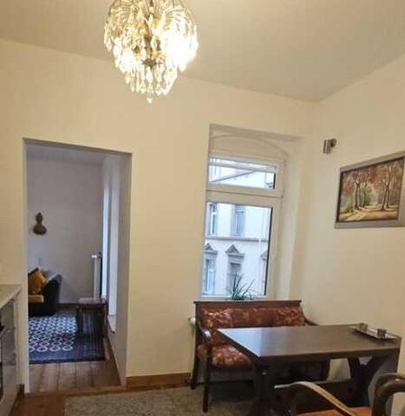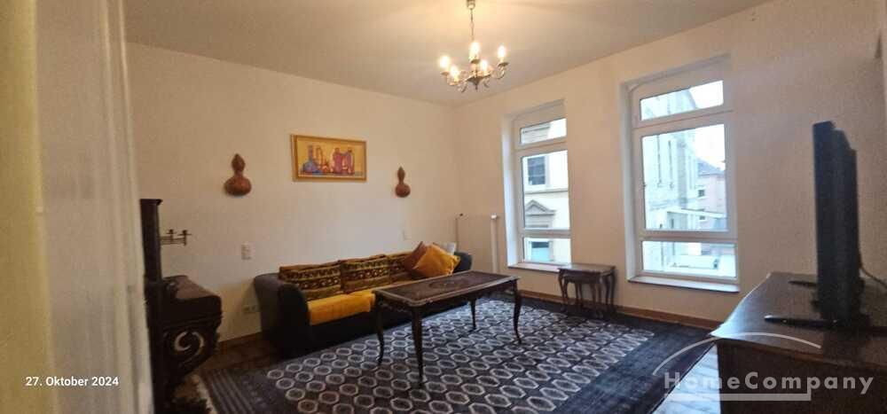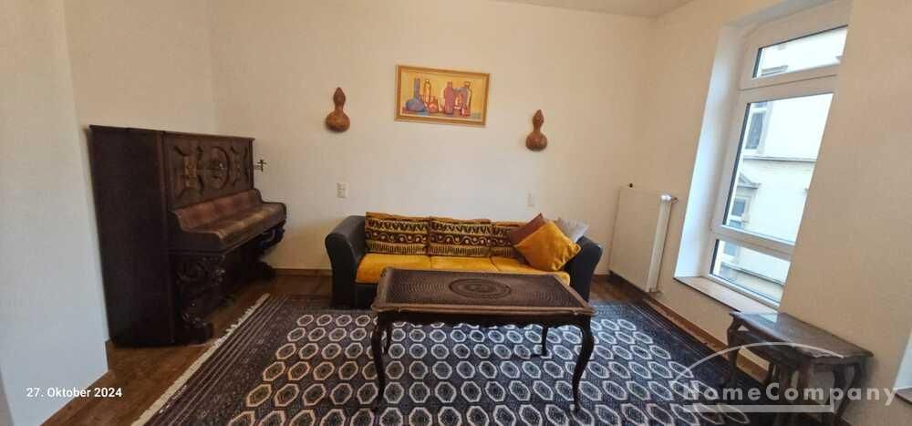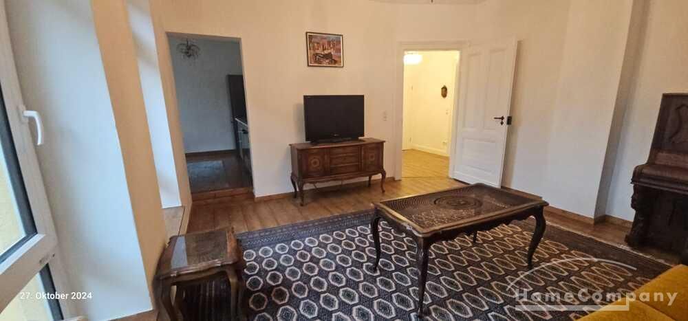 3,5 Zi.-Altbauwhg., 2. OG, möbliert, Balkon sowie kl. Garten zur gemeinschafltichen Nutzung. Wohnzimmer mit Durchgang zur offenen Küche mit Essbereich; Zugang zum Balkon von der Küche aus. 2 sep. Schlafzimmer. 1 kl. Durchgangszimmer mit Einbauschränken.