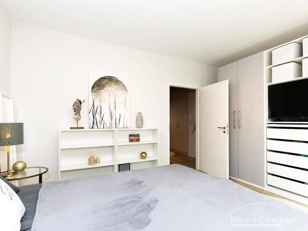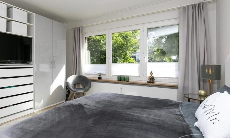 Das separate Schlafzimmer ist mit einem 1,80 m breiten Doppelbett und reichlich Schrankraum ausgestattet. Im Wohn-, wie auch im Schlafzimmer steht jeweils ein TV (smart TV) bereit.